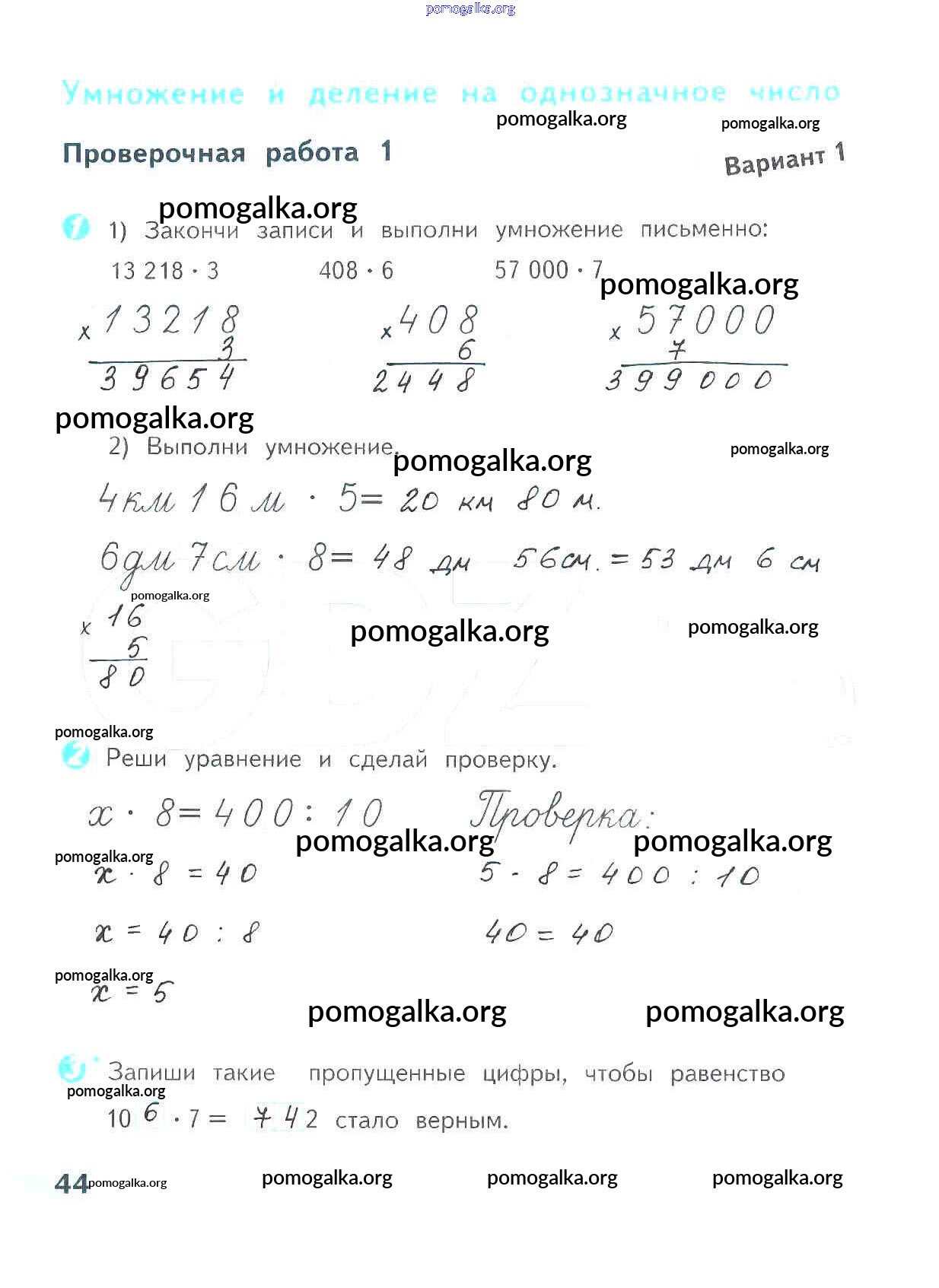 Готовые ответы - Математика 4 класс проверочные работы Волкова С.И. - страница 44