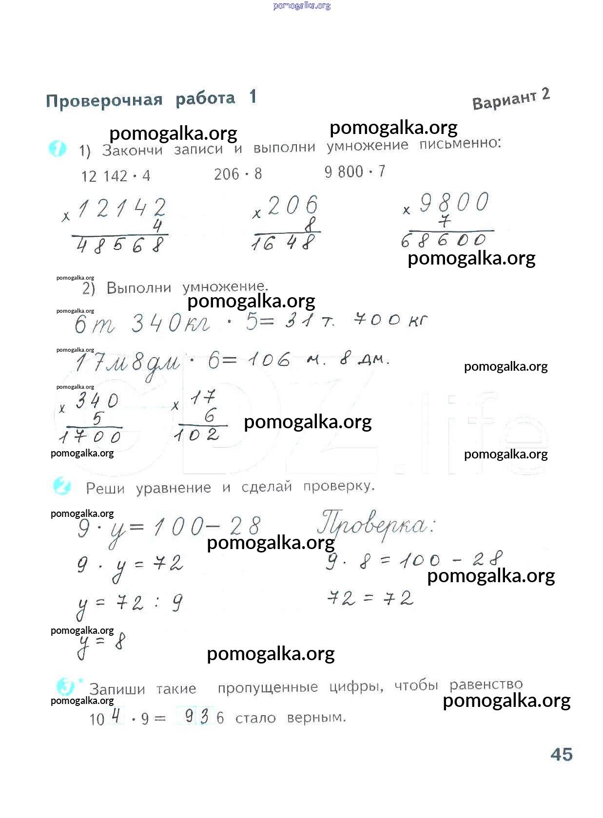 Готовые ответы - Математика 4 класс проверочные работы Волкова С.И. - страница 45