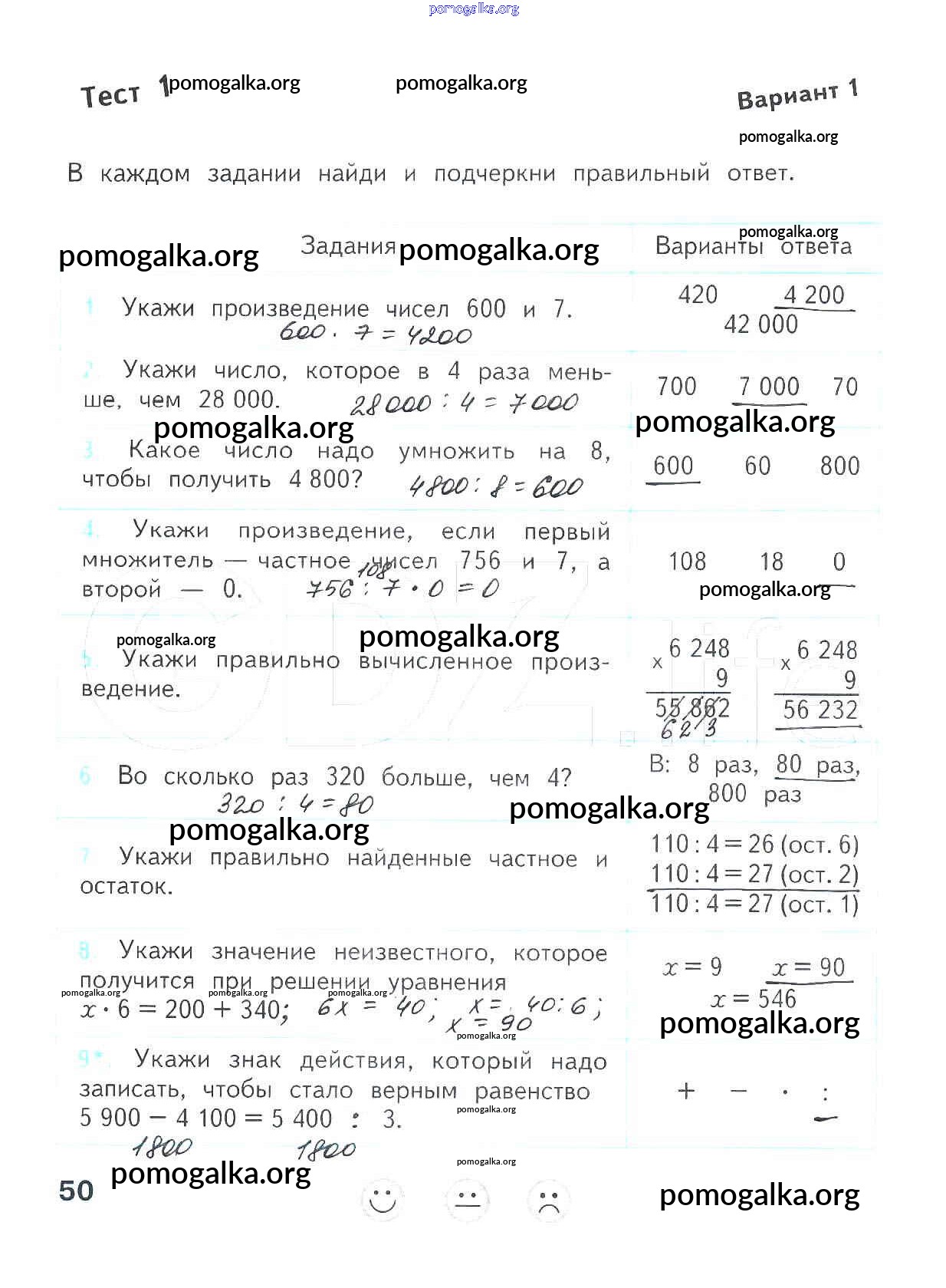 Готовые ответы - Математика 4 класс проверочные работы Волкова С.И. - страница 50