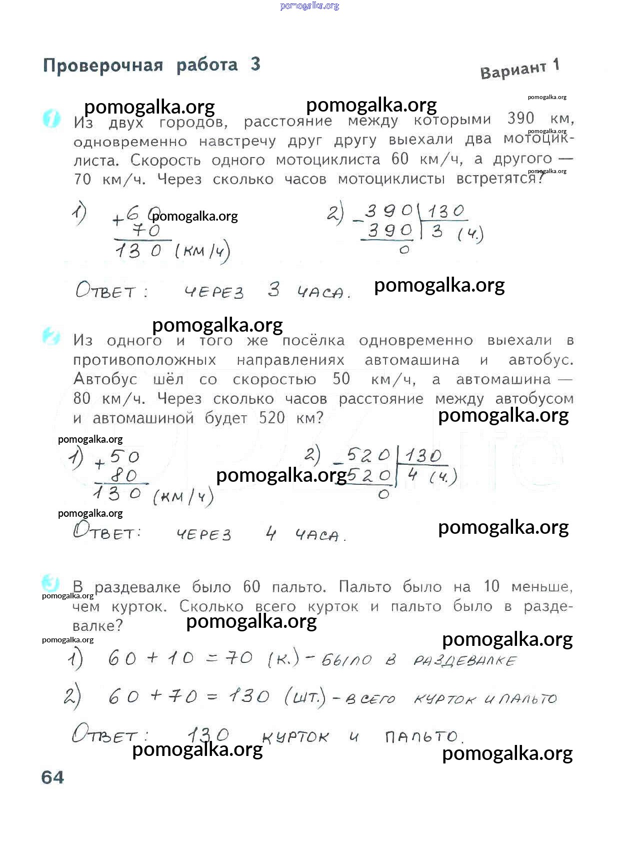 Готовые ответы - Математика 4 класс проверочные работы Волкова С.И. - страница 64