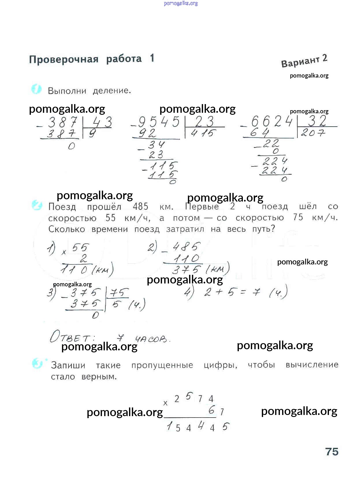 Готовые ответы - Математика 4 класс проверочные работы Волкова С.И. - страница 75