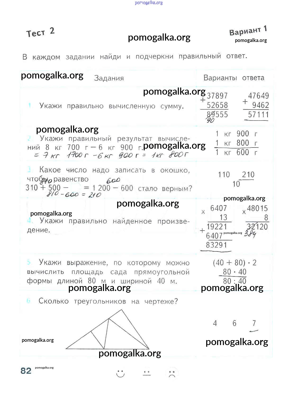 Готовые ответы - Математика 4 класс проверочные работы Волкова С.И. - страница 82