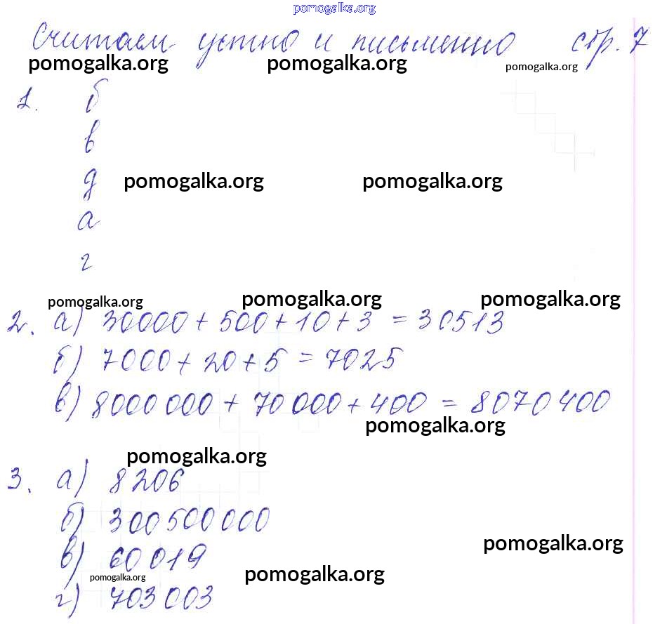 Готовые ответы - Математика 4 класс рабочая тетрадь Башмаков М.И. - часть 1. страница 7
