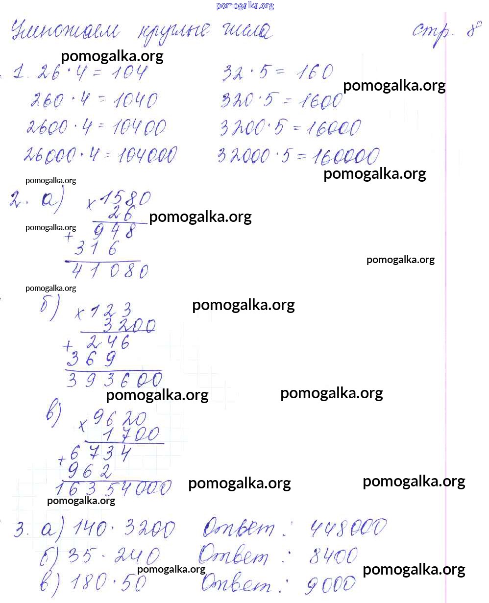 Готовые ответы - Математика 4 класс рабочая тетрадь Башмаков М.И. - часть 2. страница 8