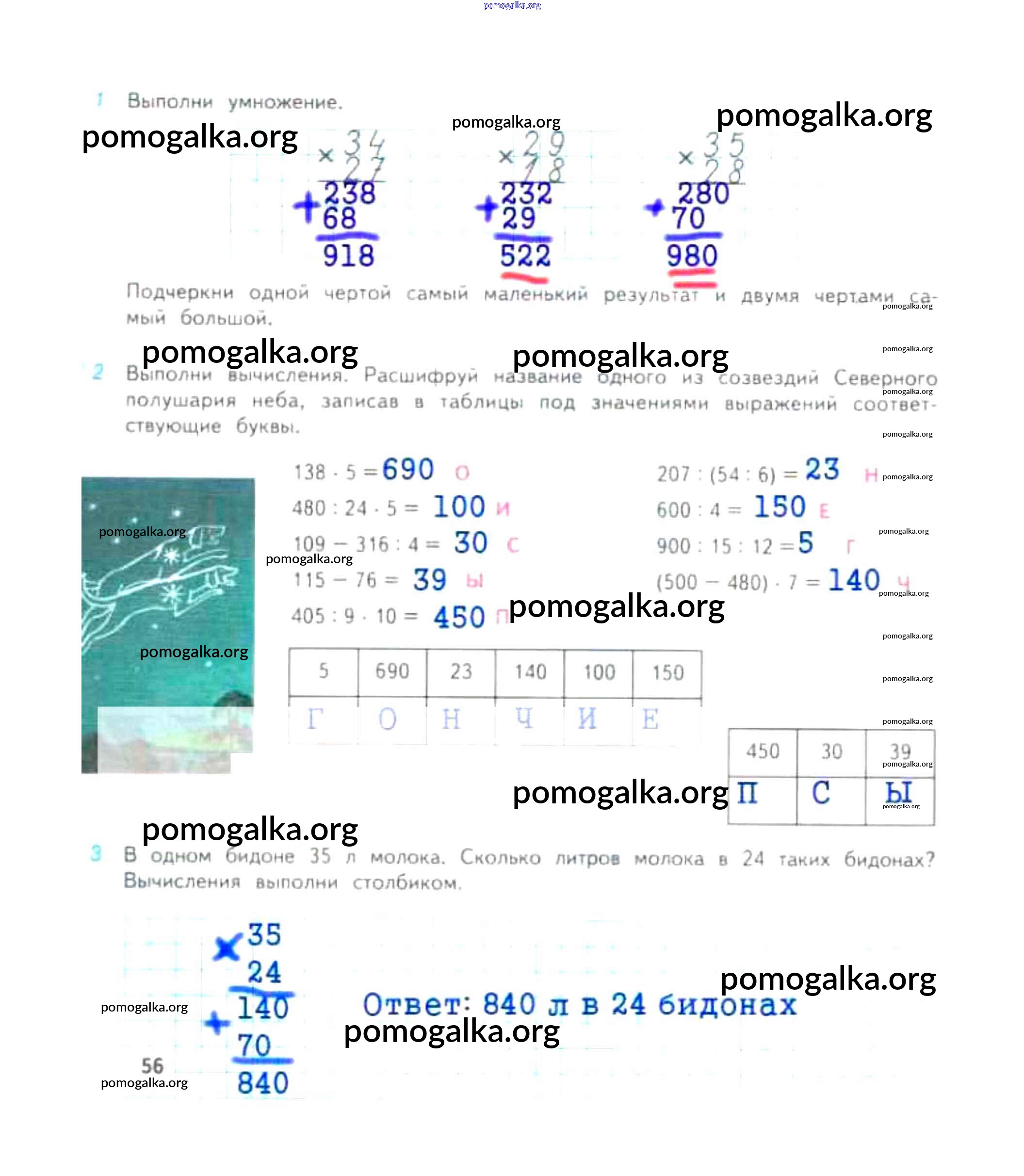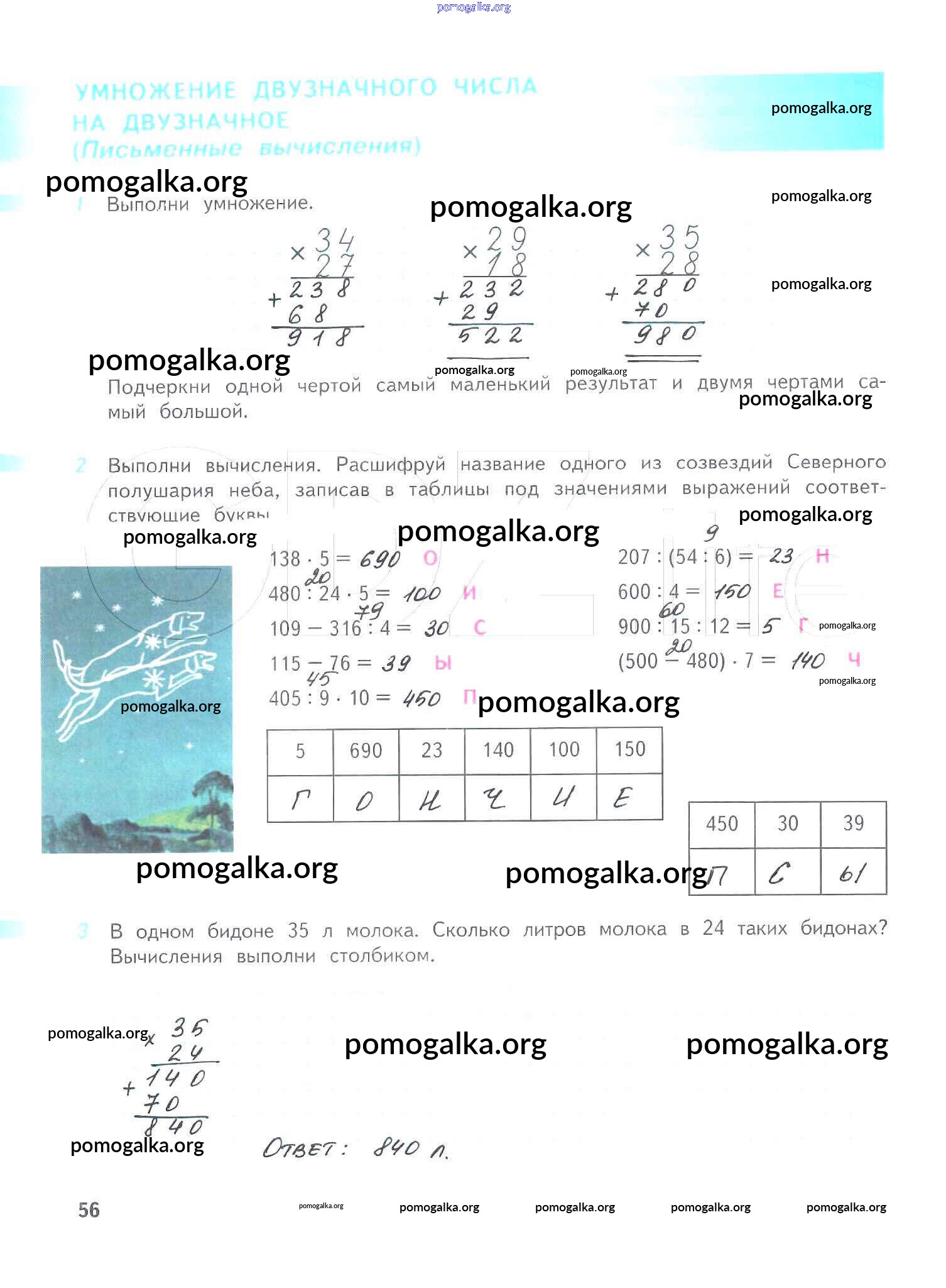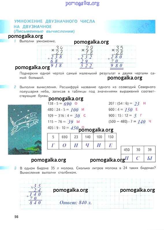 Готовые ответы - Математика 4 класс рабочая тетрадь Дорофеев Г.В. - часть 1. страница 56