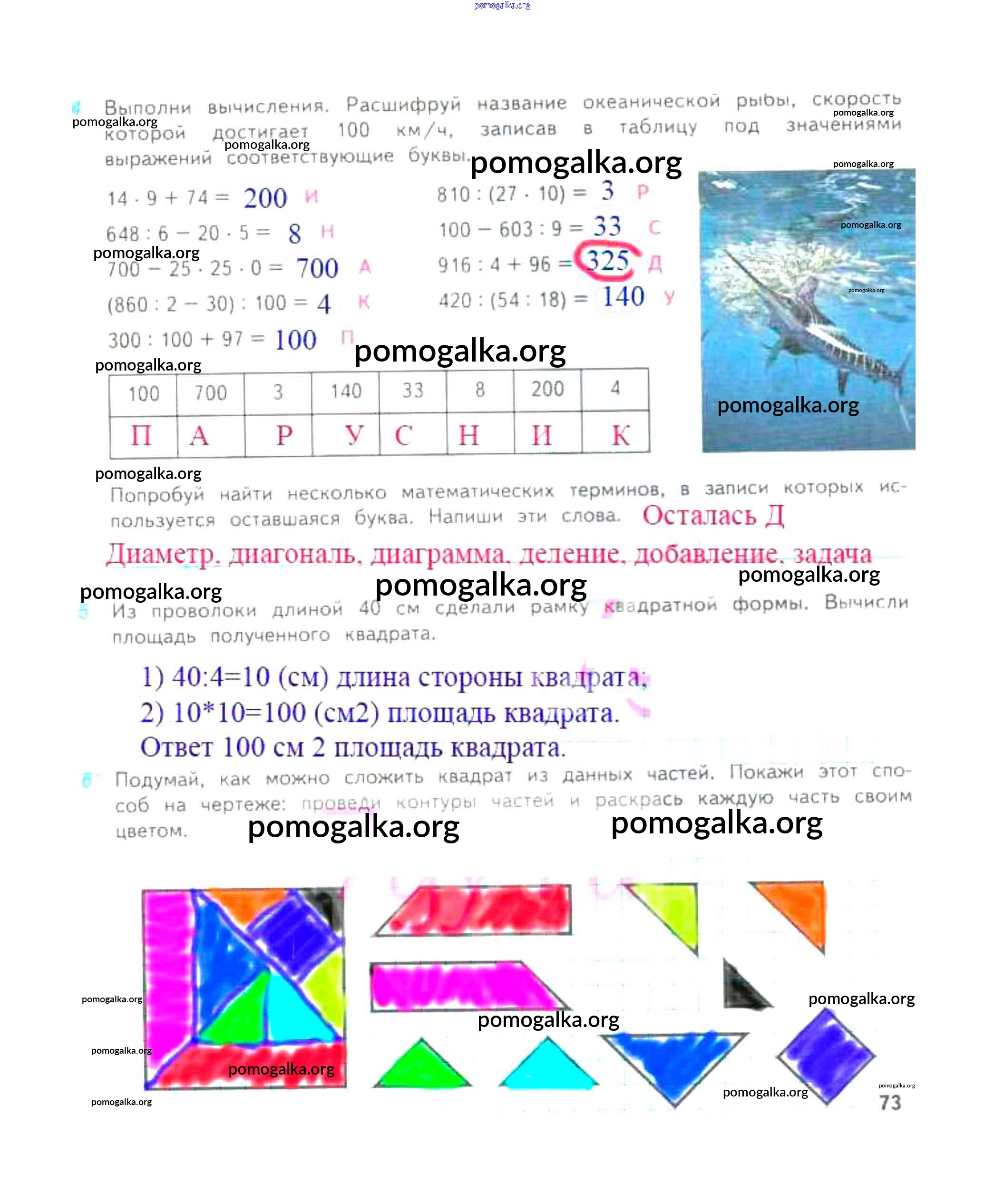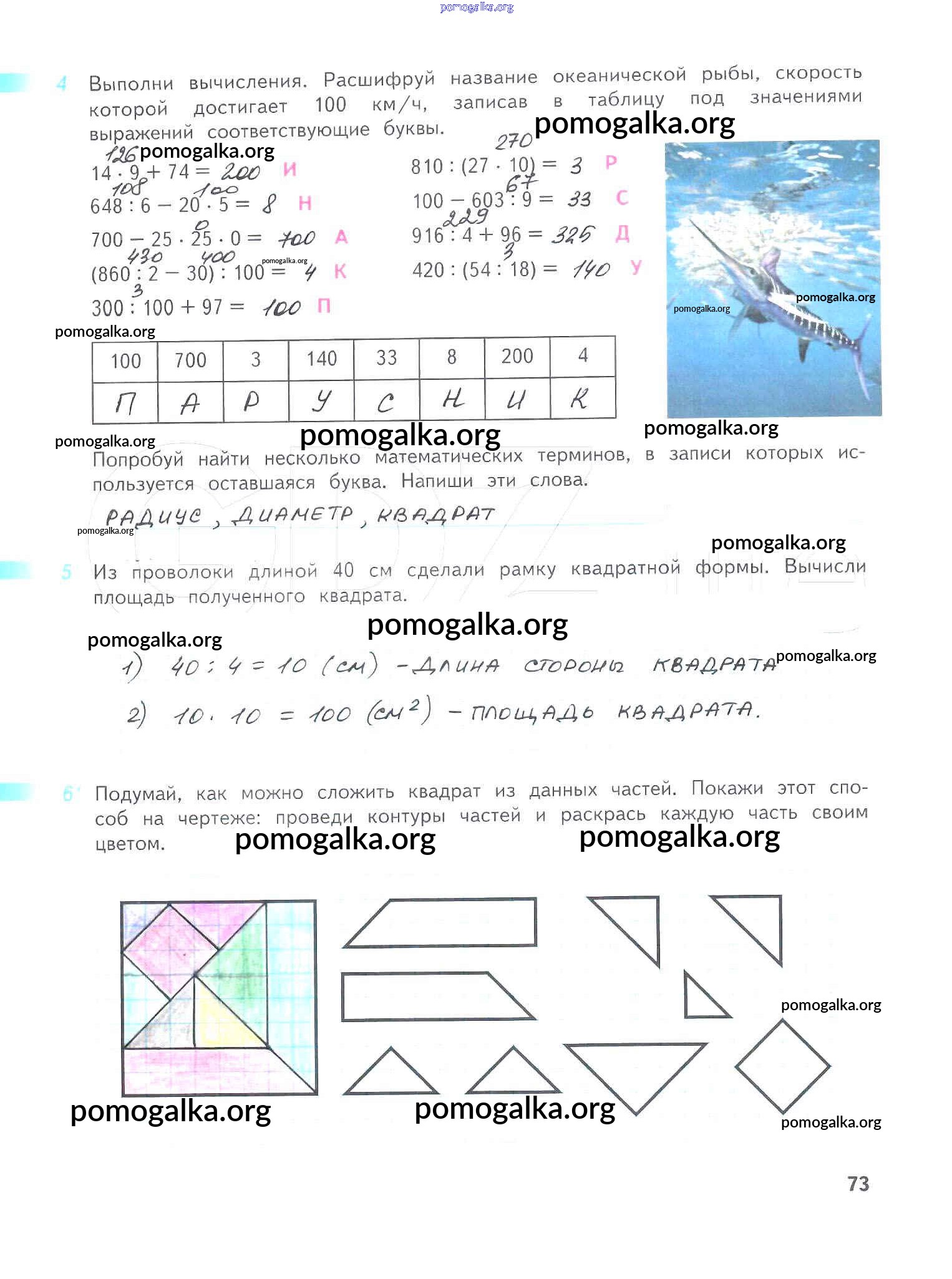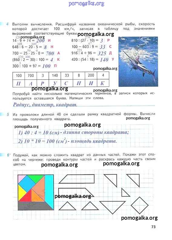 Готовые ответы - Математика 4 класс рабочая тетрадь Дорофеев Г.В. - часть 1. страница 73