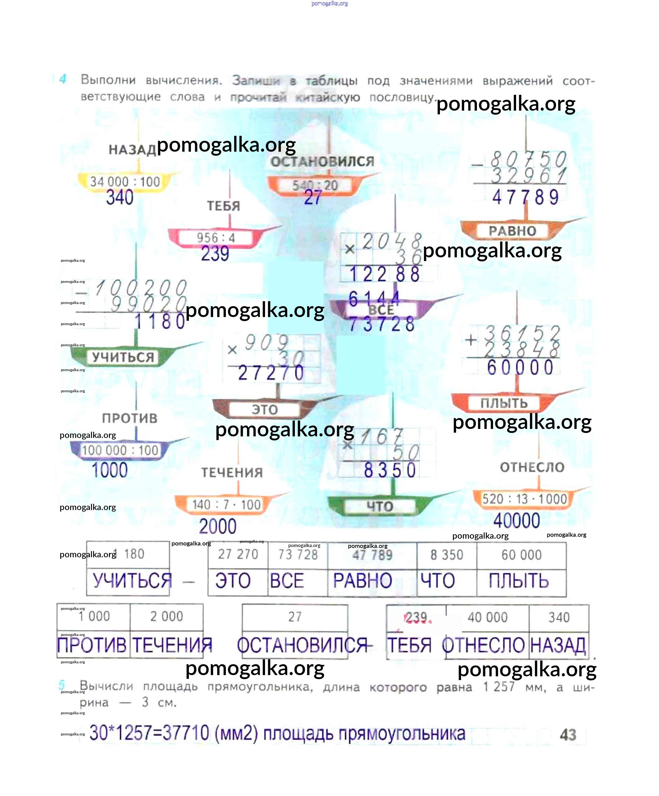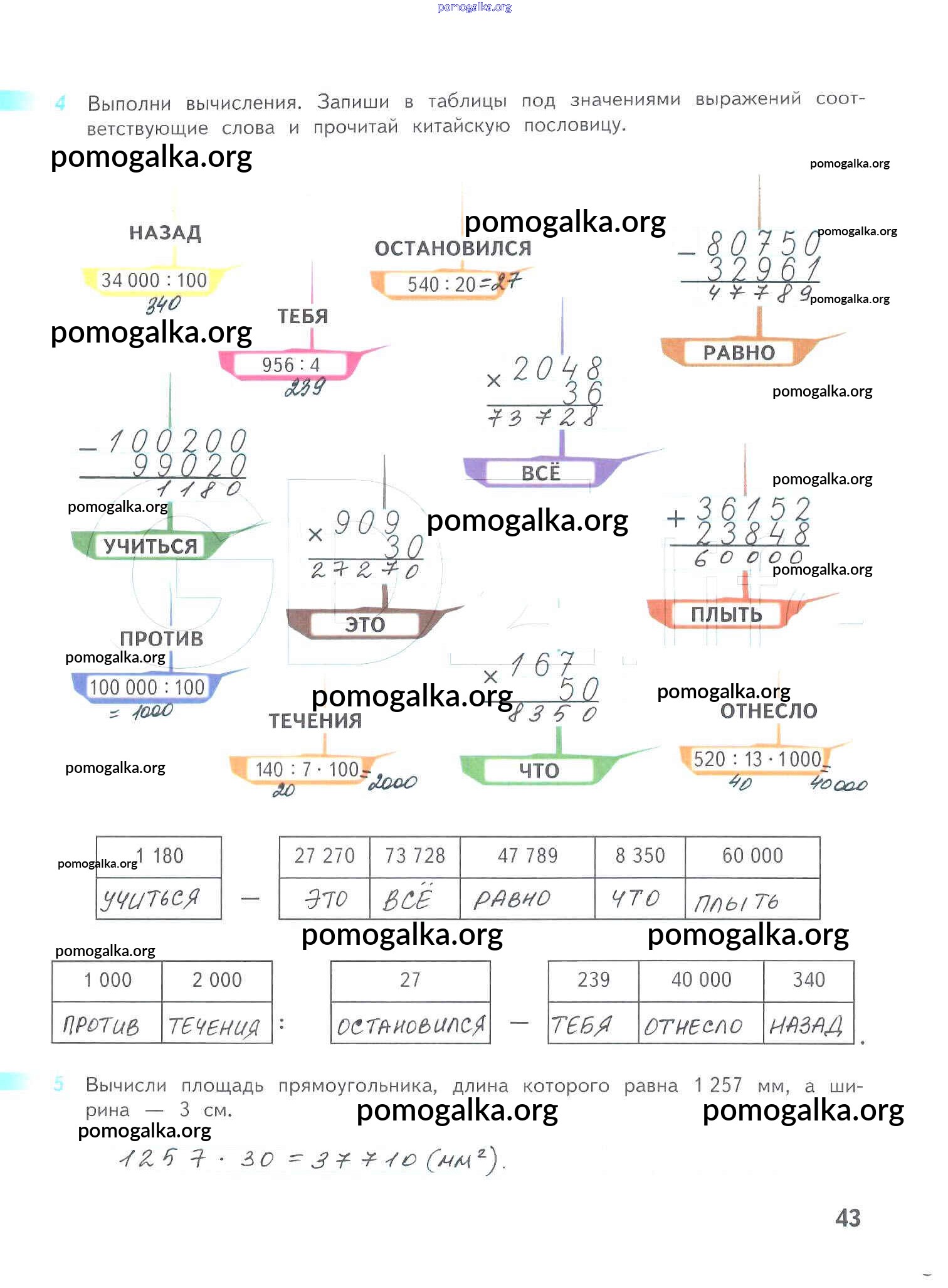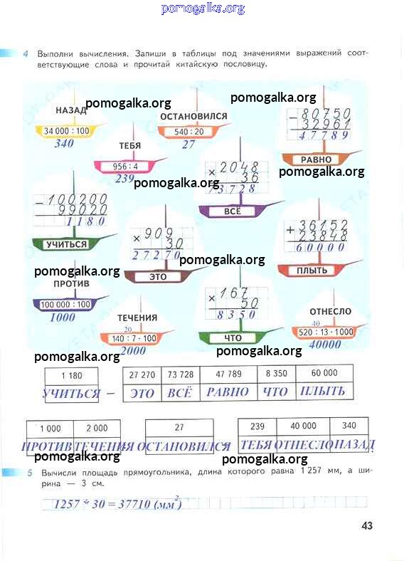Готовые ответы - Математика 4 класс рабочая тетрадь Дорофеев Г.В. - часть 2. страница 43