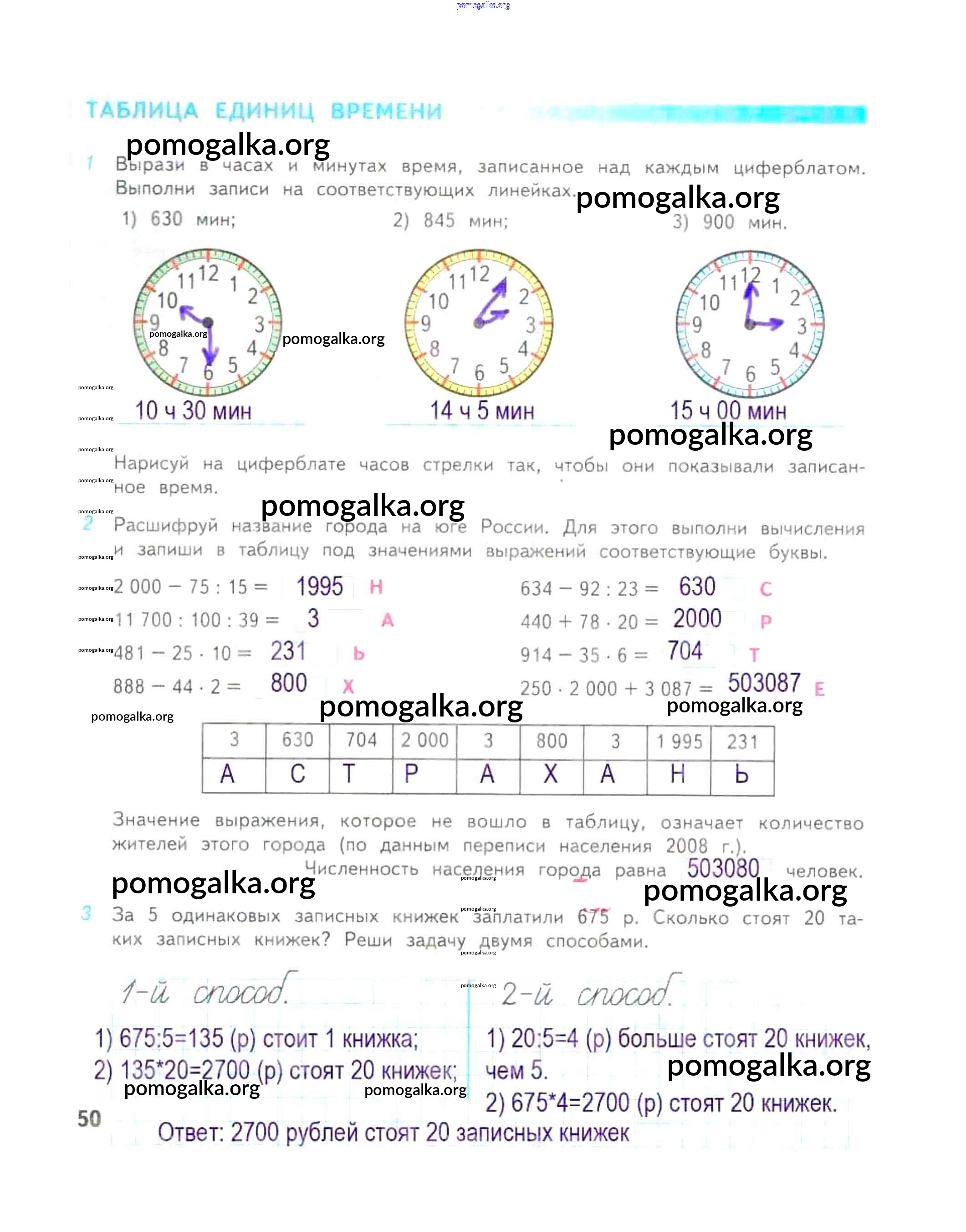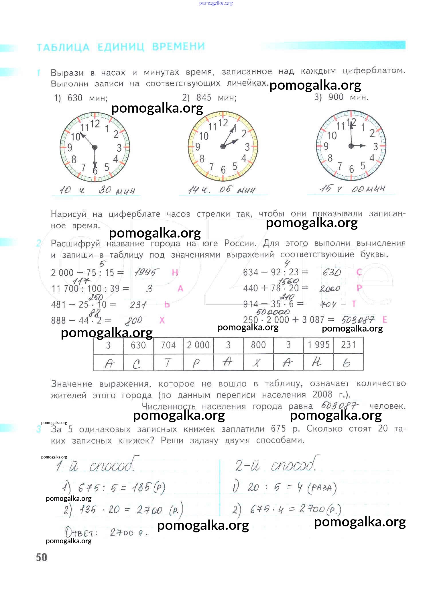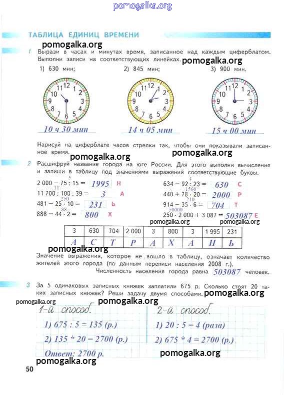 Готовые ответы - Математика 4 класс рабочая тетрадь Дорофеев Г.В. - часть 2. страница 50