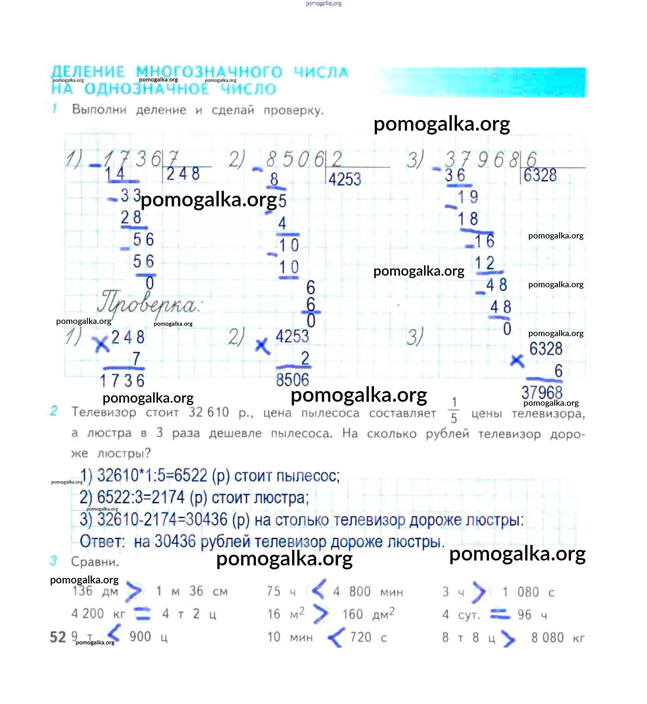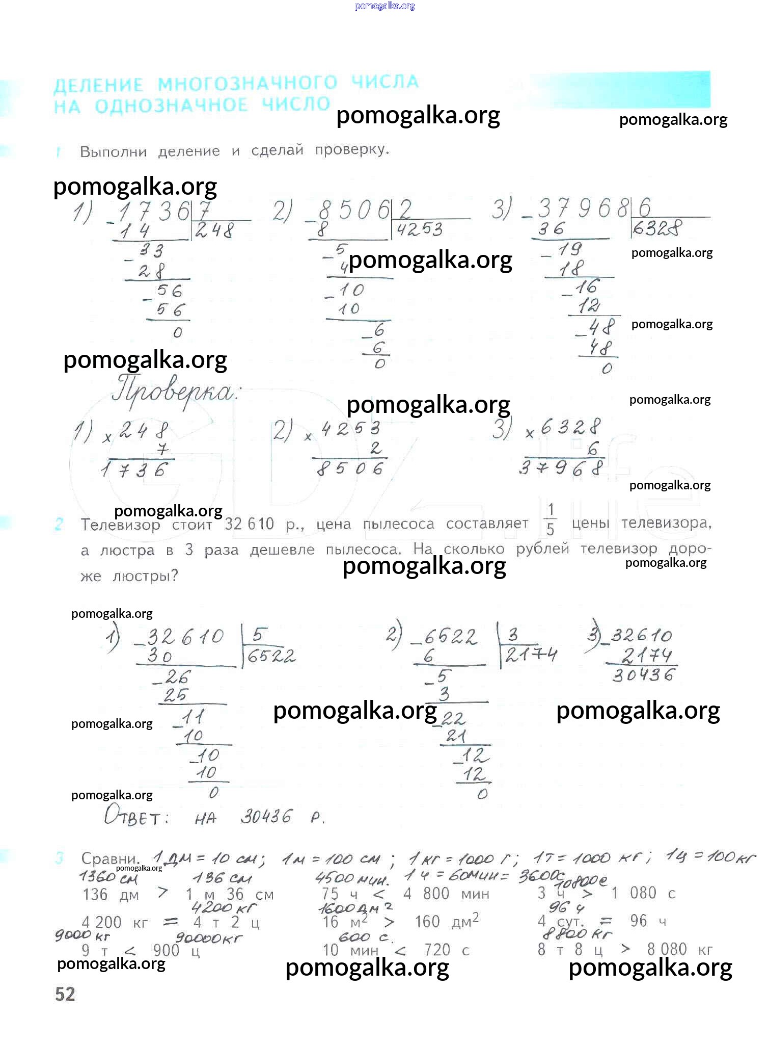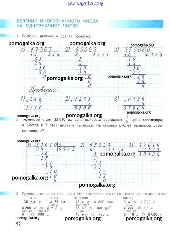 Готовые ответы - Математика 4 класс рабочая тетрадь Дорофеев Г.В. - часть 2. страница 52