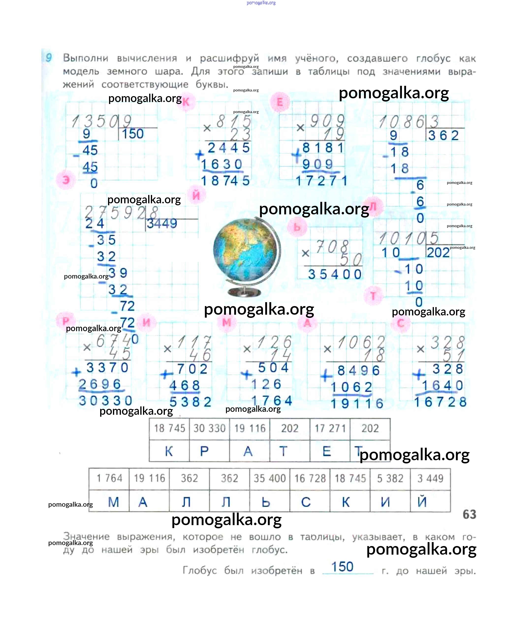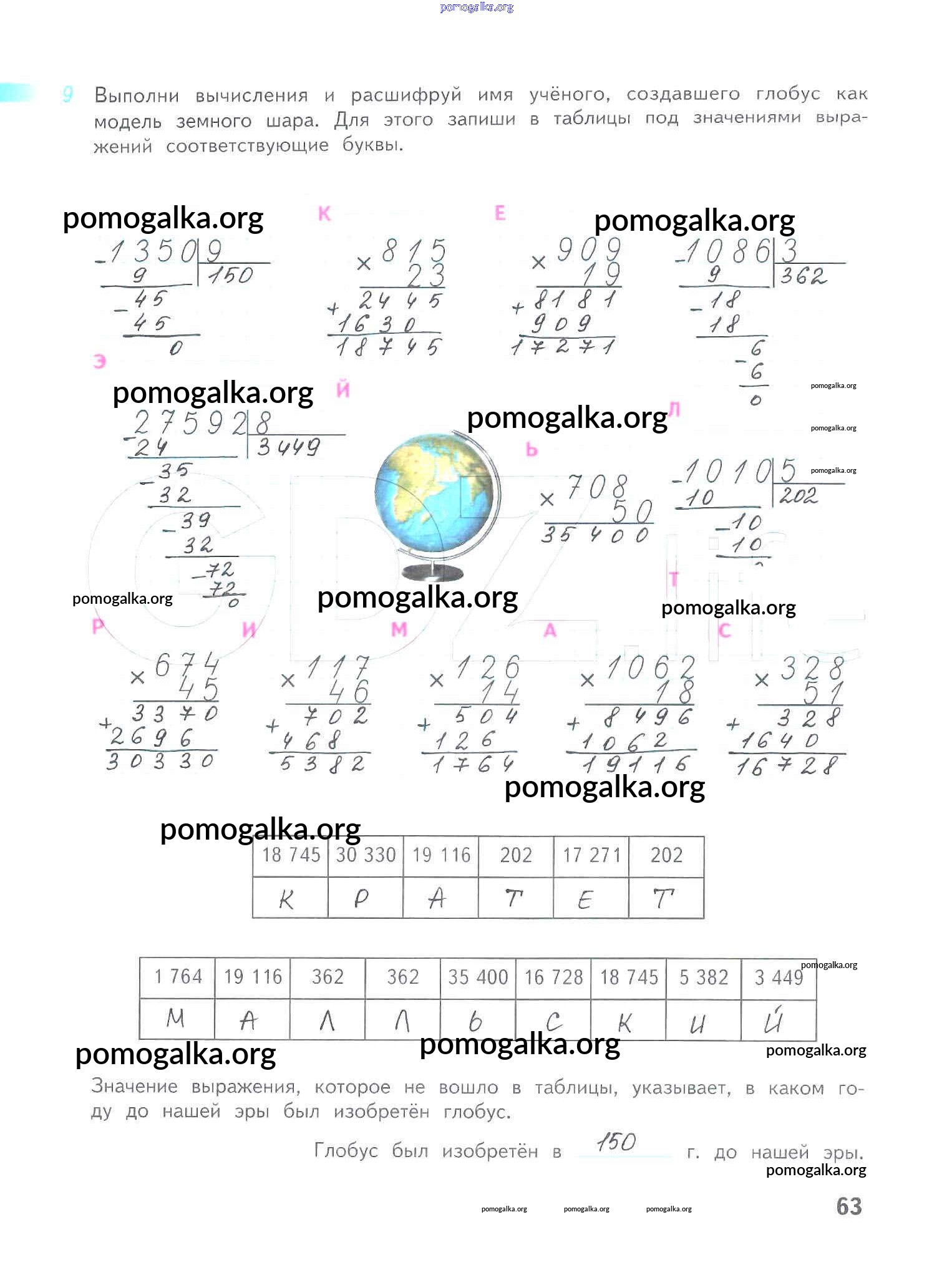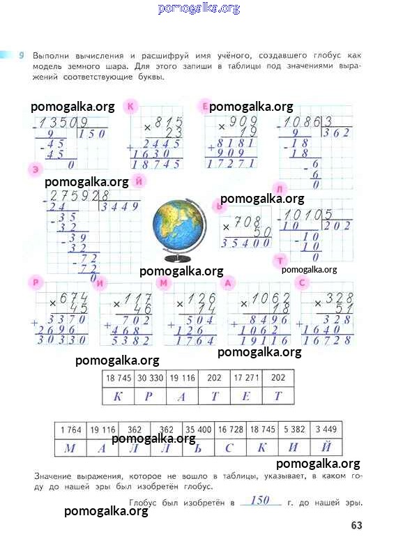 Готовые ответы - Математика 4 класс рабочая тетрадь Дорофеев Г.В. - часть 2. страница 63