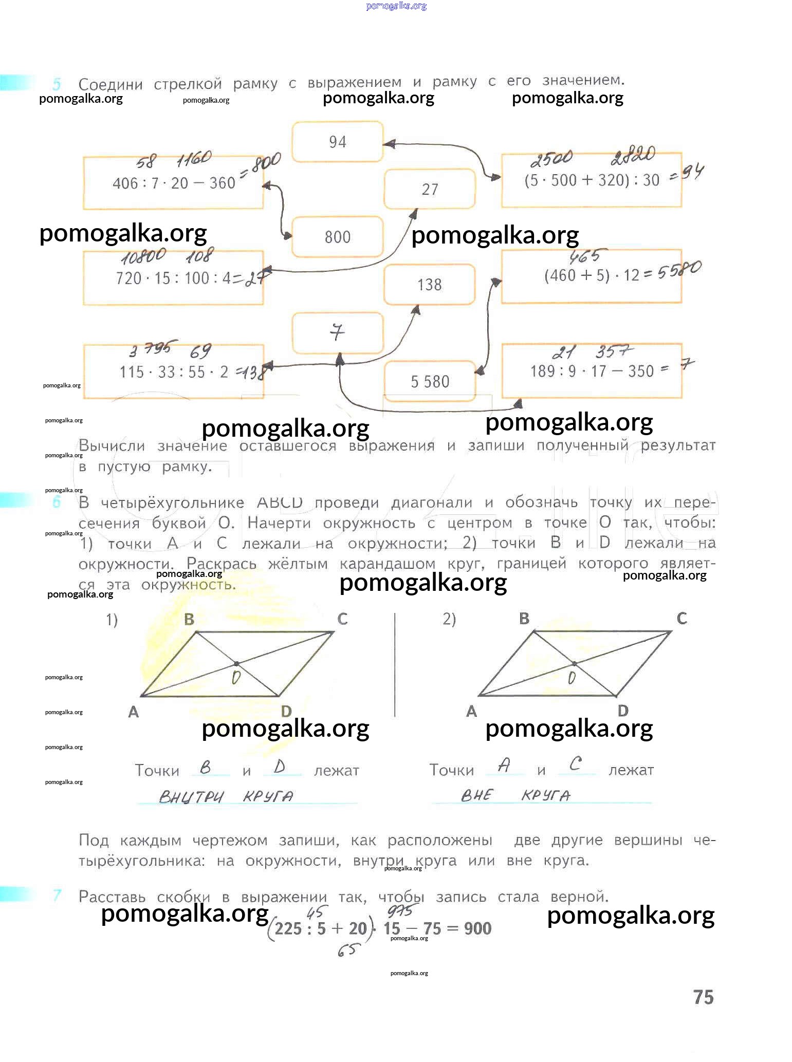 Готовые ответы - Математика 4 класс рабочая тетрадь Дорофеев Г.В. - часть 2. страница 75