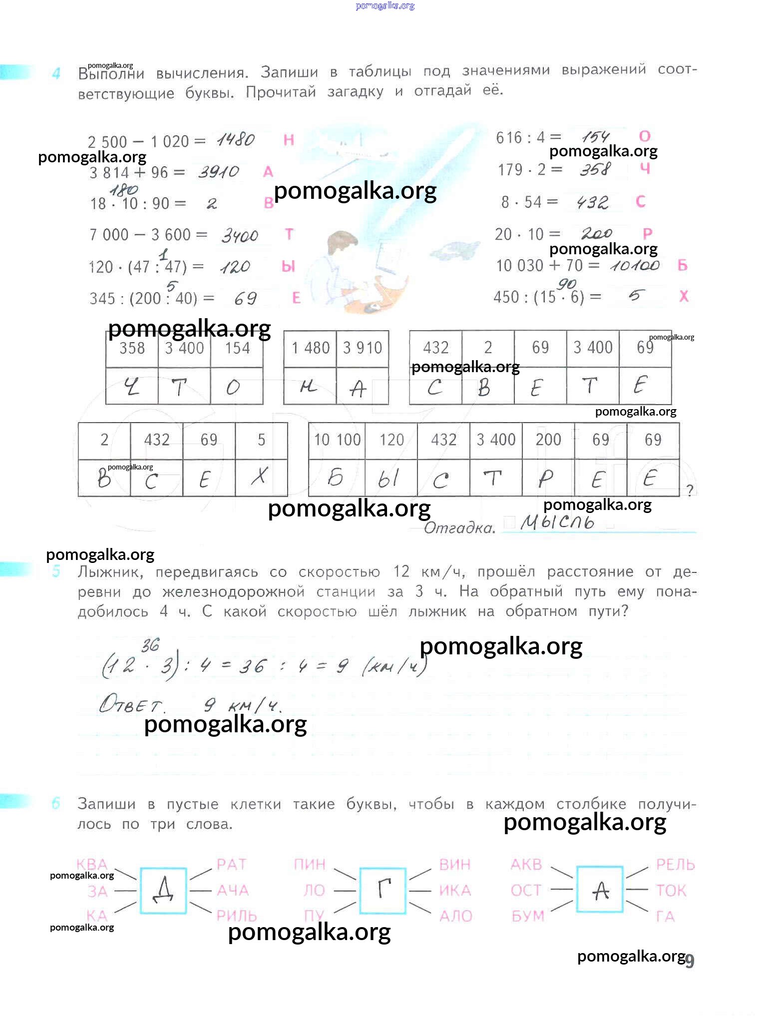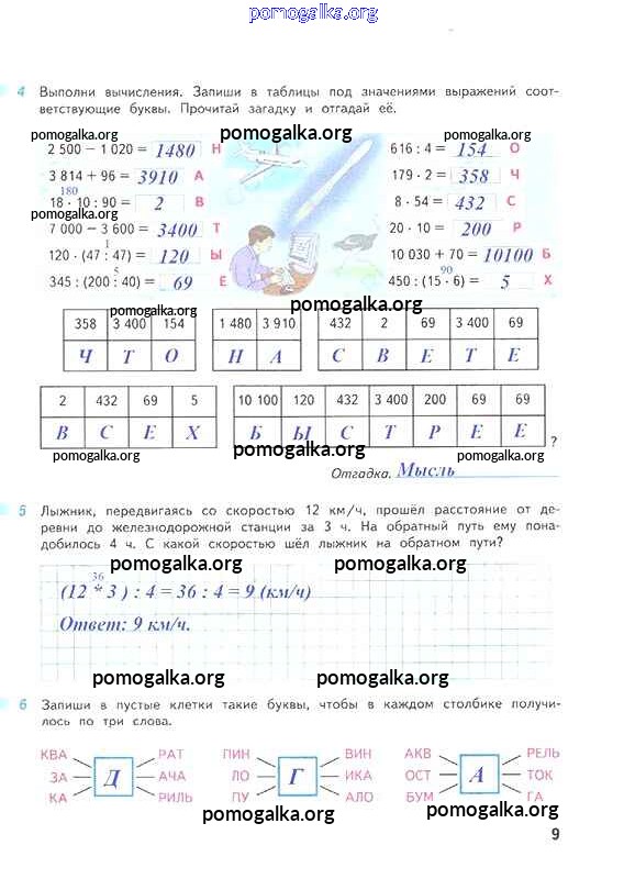 Готовые ответы - Математика 4 класс рабочая тетрадь Дорофеев Г.В. - часть 2. страница 9