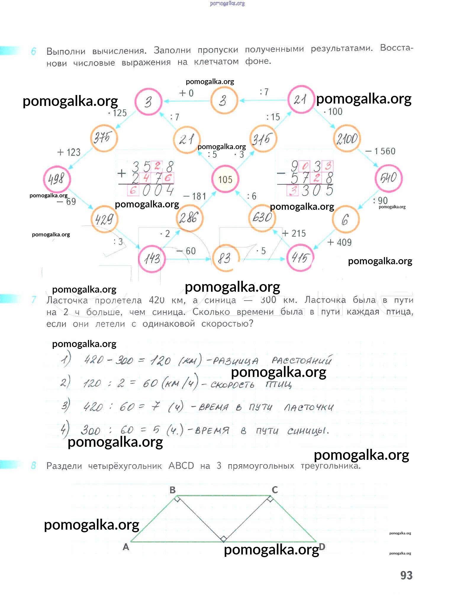 Готовые ответы - Математика 4 класс рабочая тетрадь Дорофеев Г.В. - часть 2. страница 93