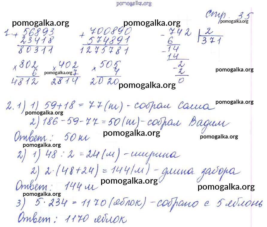 Готовые ответы - Математика 4 класс рабочая тетрадь Кремнева С.Ю. (к уч.Моро) - часть 1. страница 35