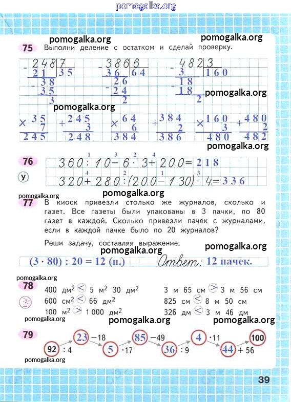 Готовые ответы - Математика 4 класс рабочая тетрадь Волкова С.И. - часть 1 39