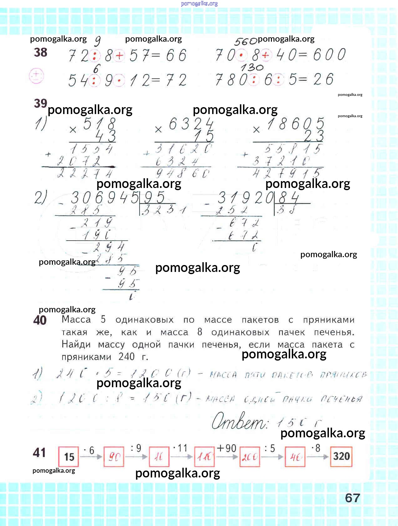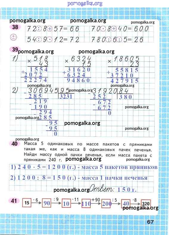 Готовые ответы - Математика 4 класс рабочая тетрадь Волкова С.И. - часть 2 67