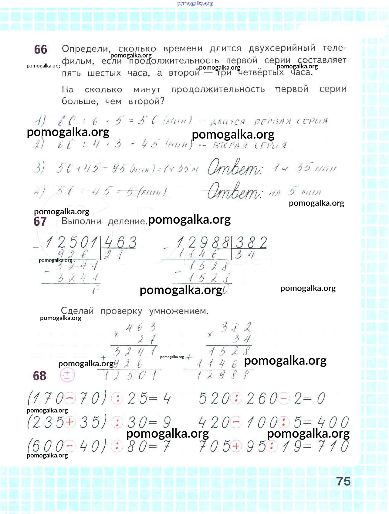Готовые ответы - Математика 4 класс рабочая тетрадь Волкова С.И. - часть 2 75