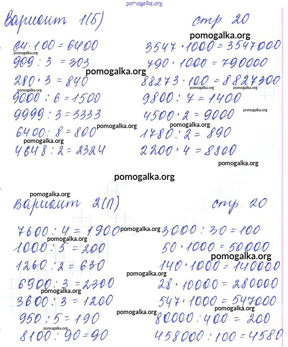 Готовые ответы - Математика 4 класс самостоятельные работы Самсонова Л.Ю. - часть 2. страница 20