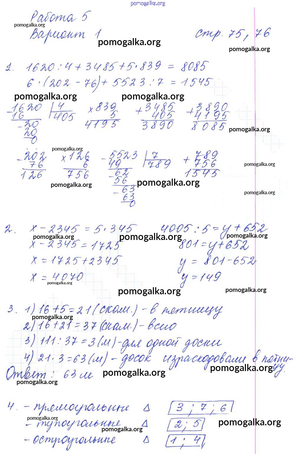 Готовые ответы - Математика 4 класс самостоятельные работы Самсонова Л.Ю. - часть 2. страница 75-76