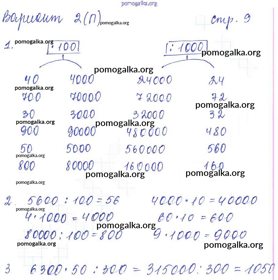 Готовые ответы - Математика 4 класс самостоятельные работы Самсонова Л.Ю. - часть 2. страница 9