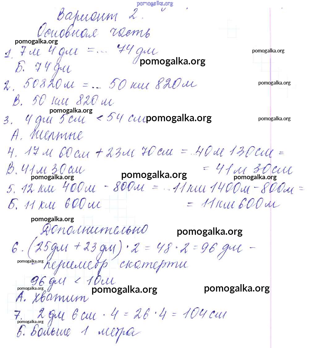 Готовые ответы - Математика 4 класс тесты и самостоятельные работы для текущего контроля Нефедова М.Г. (к уч. Башмакова) - тест №2 тест 2