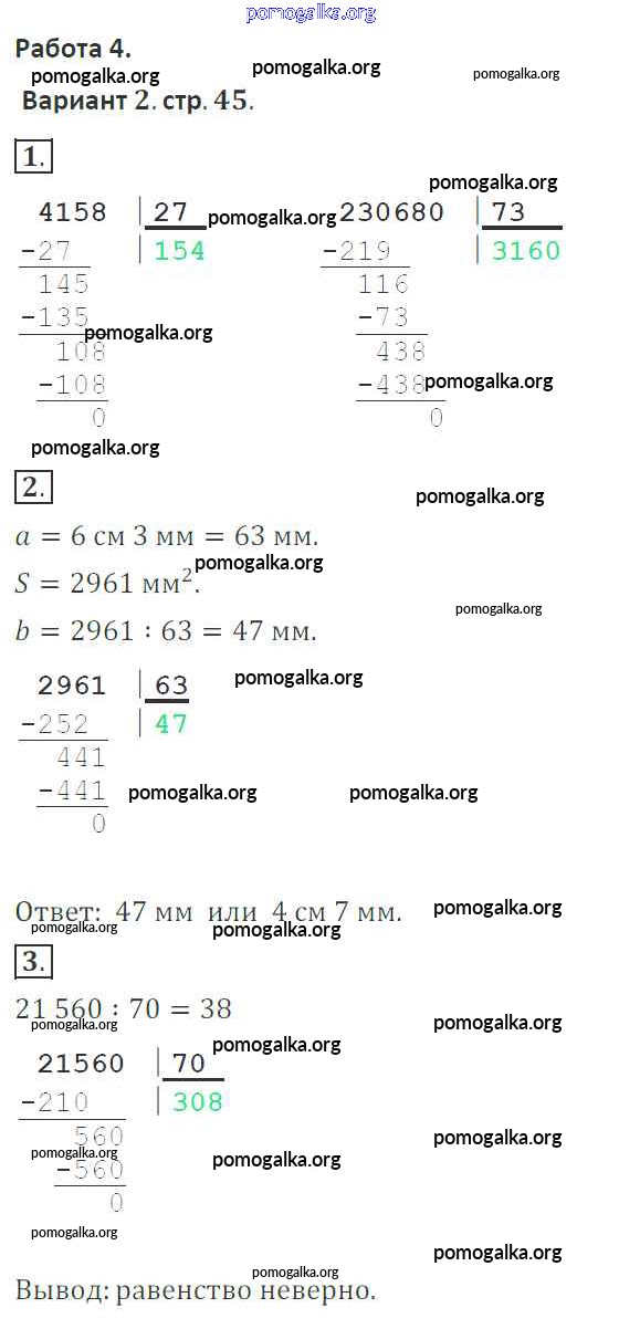 Готовые ответы - Математика 4 класс тетрадь для контрольных работ Рудницкая В.Н. - страница 45
