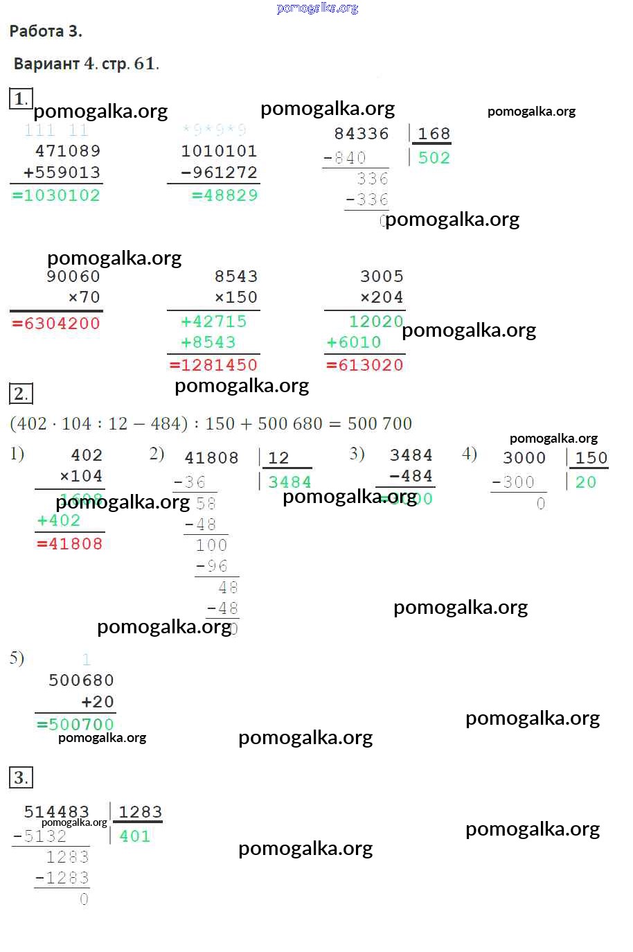 Готовые ответы - Математика 4 класс тетрадь для контрольных работ Рудницкая В.Н. - страница 61