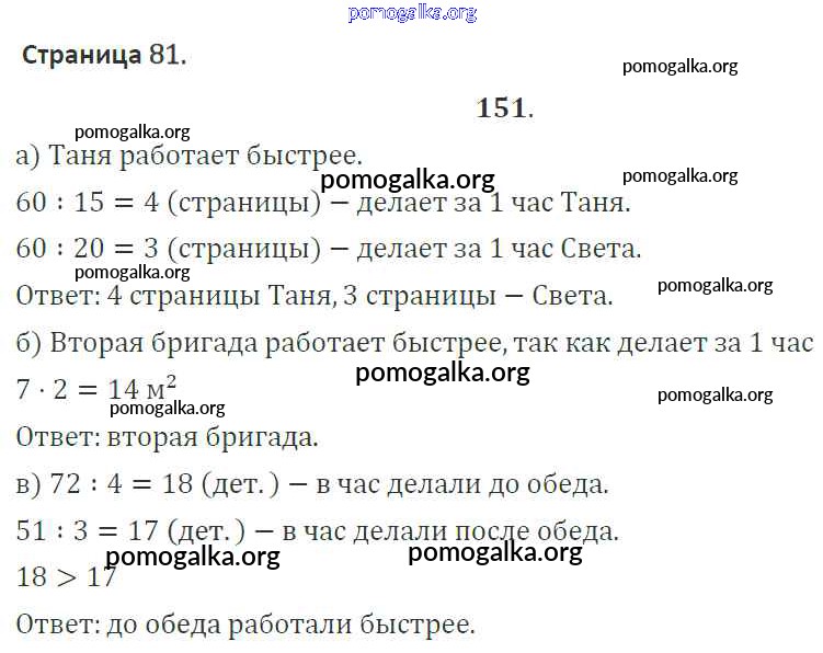 Готовые ответы - Математика 4 класс тетрадь для самостоятельной работы Захарова О.А. - часть 1. задание 151