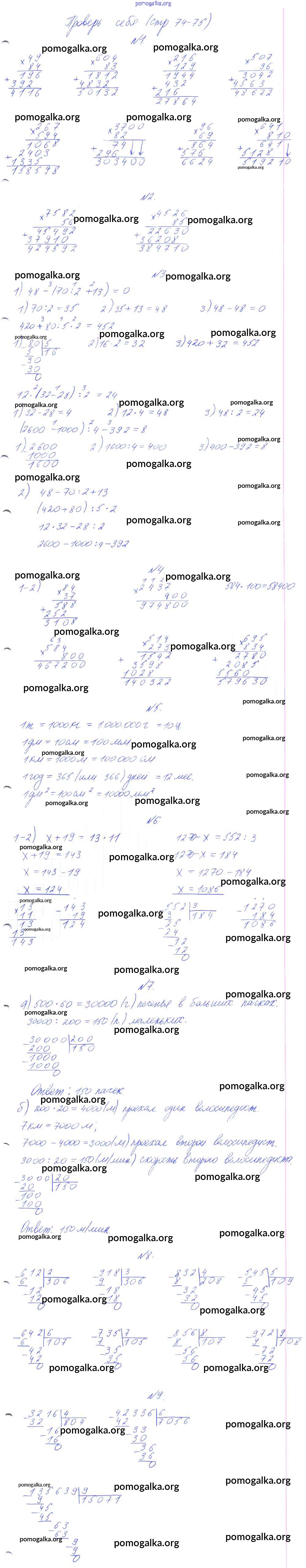 Готовые ответы - Математика 4 класс Аргинская И.И. - часть 1 проверь себя стр. 74-75