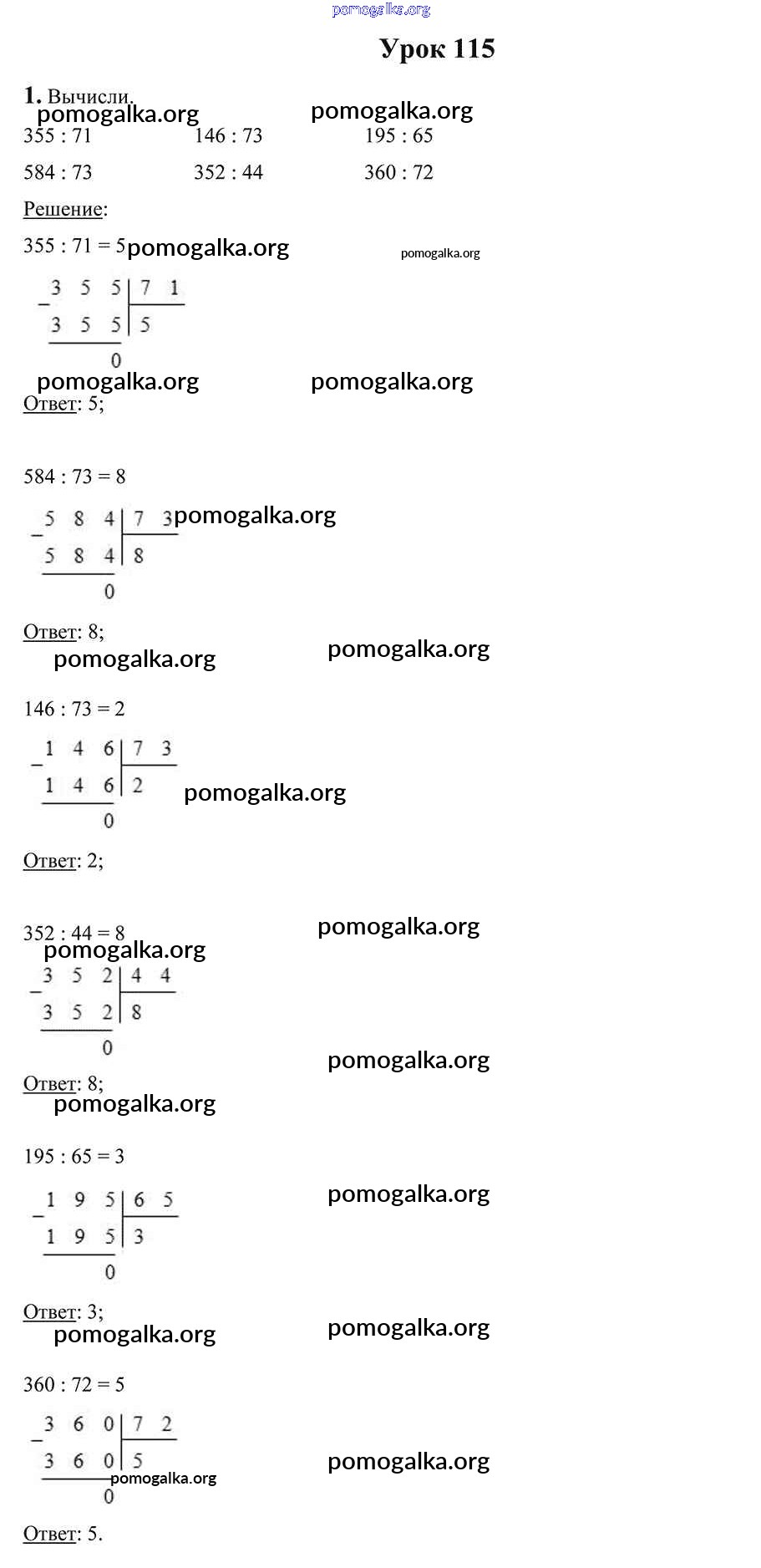 Готовые ответы - Математика 4 класс Чеботаревская Т.М. - урок 115 1