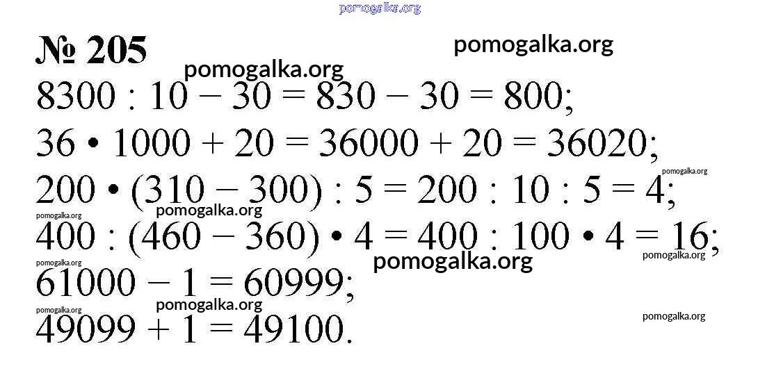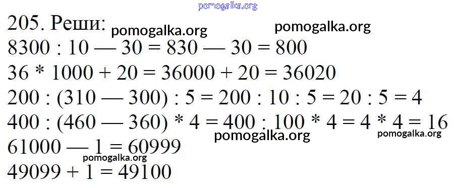 Готовые ответы - Математика 4 класс Моро М.И. - упражнение часть 1 205