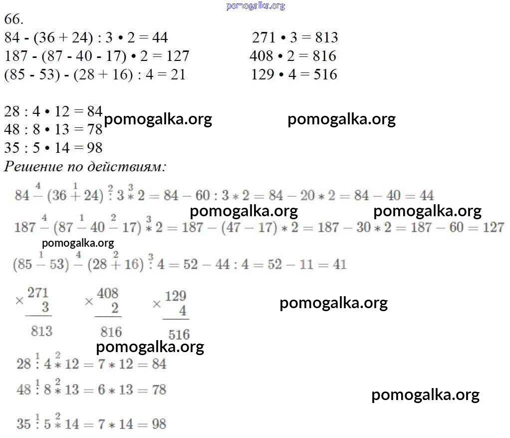 Готовые ответы - Математика 4 класс Моро М.И. - упражнение часть 1 66