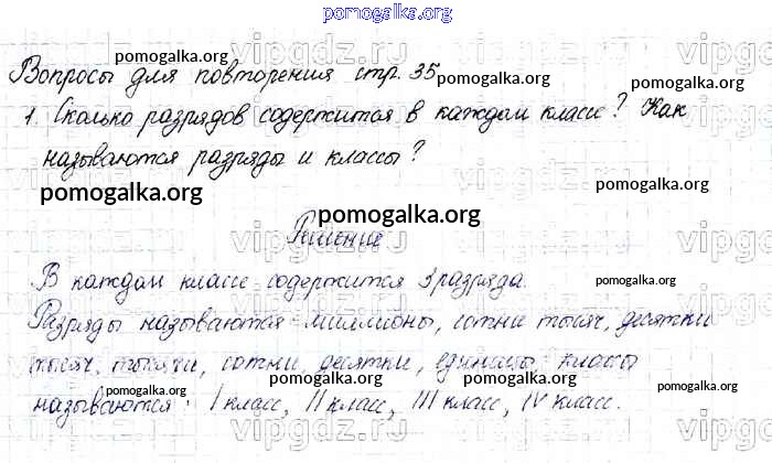 Готовые ответы - Математика 4 класс Моро М.И. - страница 35 повторение 1