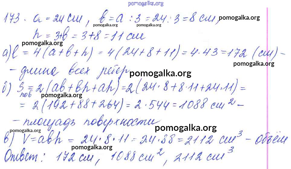 Готовые ответы - Математика 5 класс Дидактические материалы Чесноков А.С. - вариант 3 самостоятельная работа 173