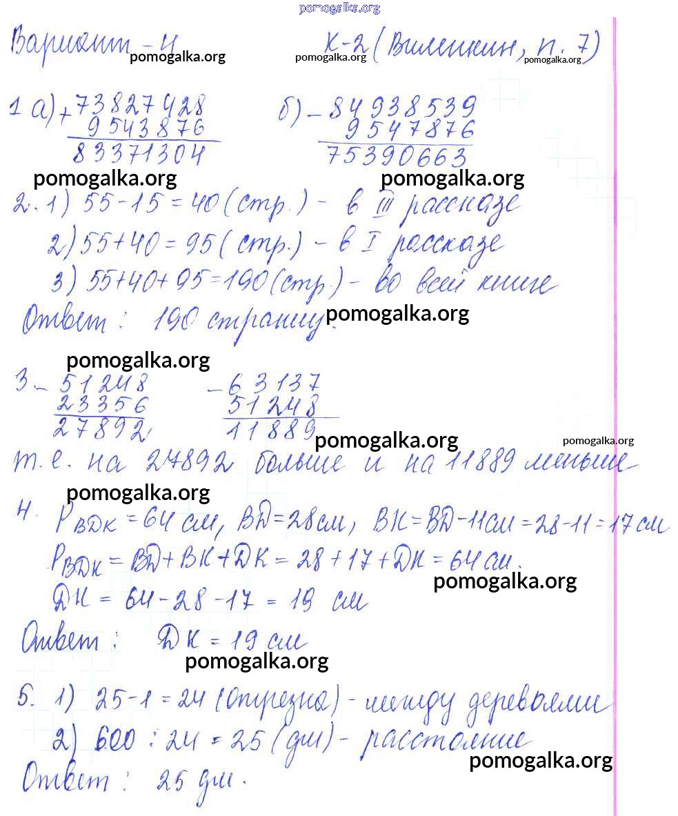 Готовые ответы - Математика 5 класс Дидактические материалы Чесноков А.С. - кр-2. вариант контрольная работа 4