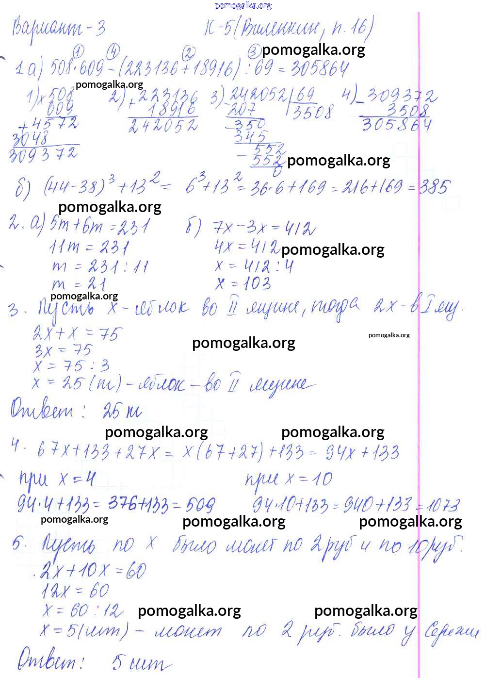 Готовые ответы - Математика 5 класс Дидактические материалы Чесноков А.С. - кр-5. вариант контрольная работа 3
