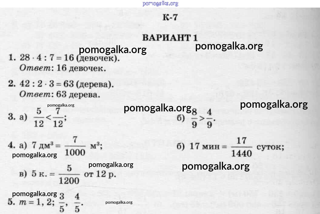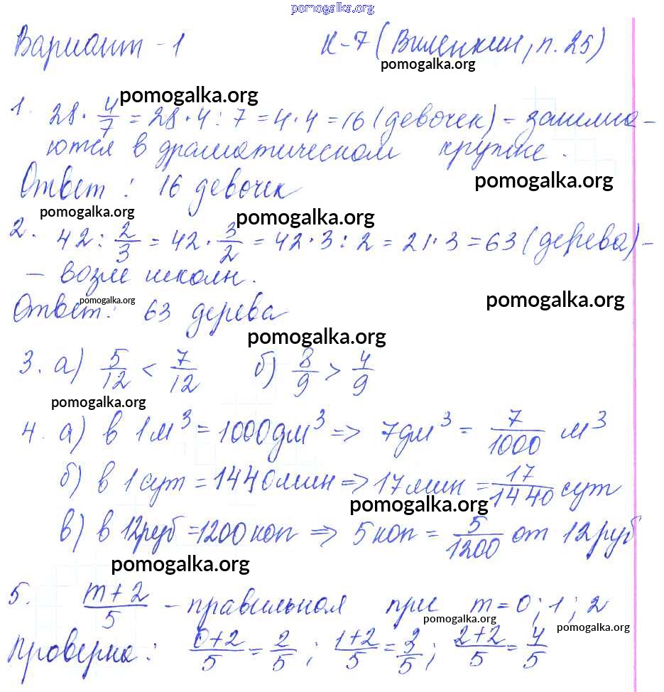 Готовые ответы - Математика 5 класс Дидактические материалы Чесноков А.С. - кр-7. вариант контрольная работа 1