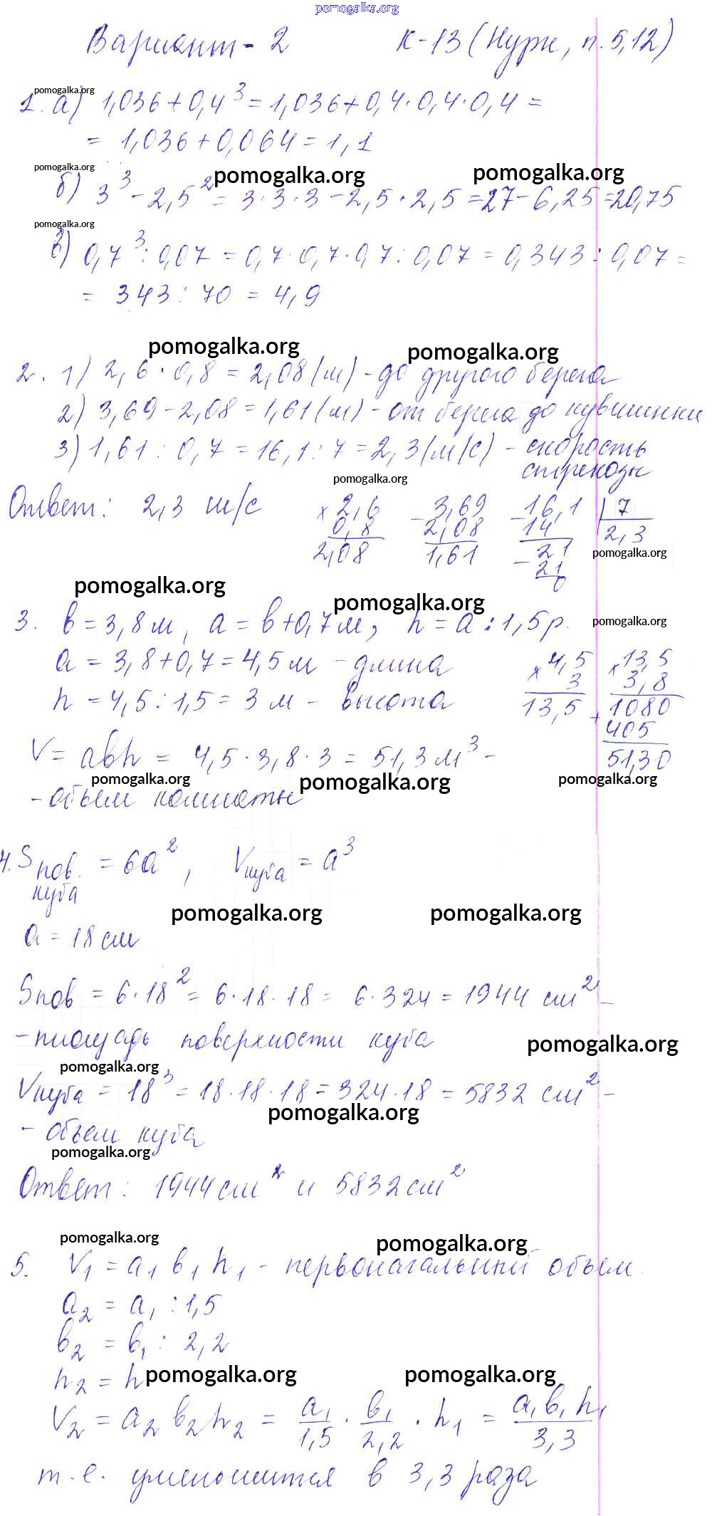 Готовые ответы - Математика 5 класс Дидактические материалы Чесноков А.С. - кр-13. вариант контрольная работа 2