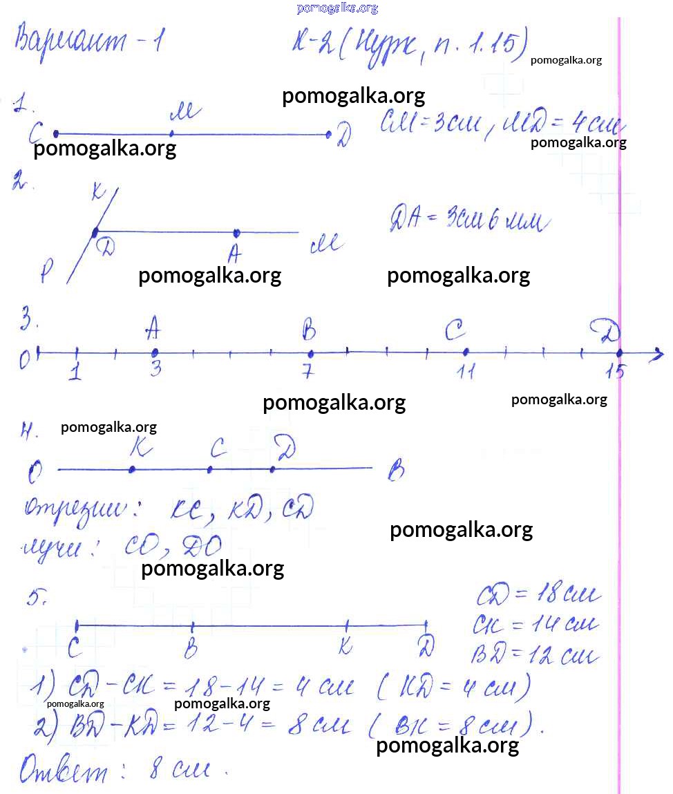 Готовые ответы - Математика 5 класс Дидактические материалы Чесноков А.С. - кр-2. вариант контрольная работа 1