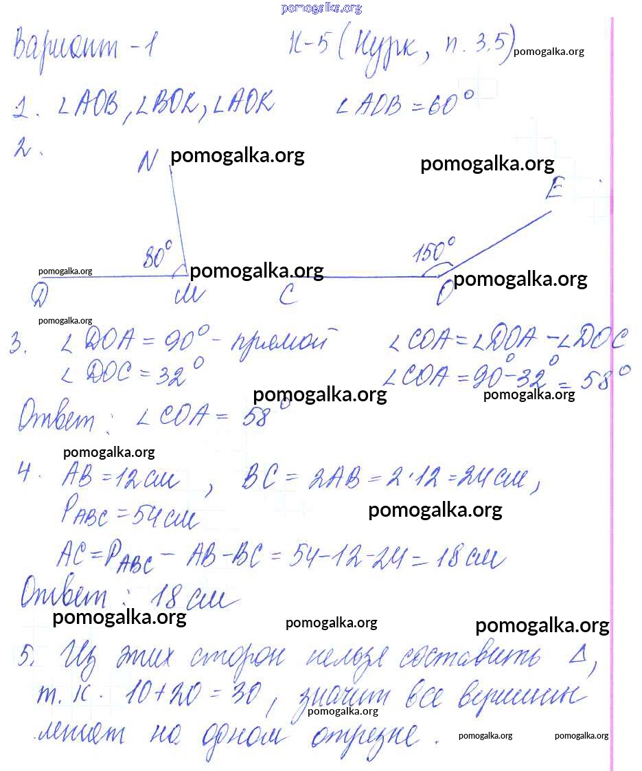 Готовые ответы - Математика 5 класс Дидактические материалы Чесноков А.С. - кр-5. вариант контрольная работа 1