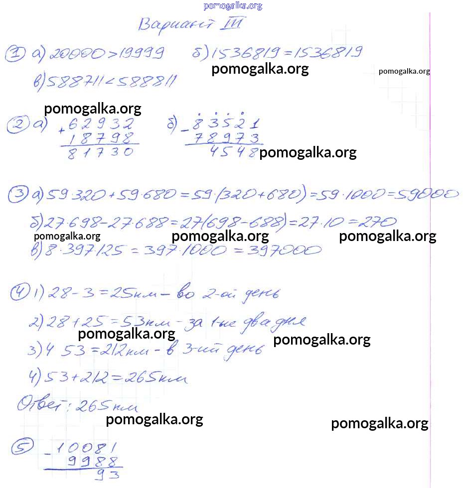 Готовые ответы - Математика 5 класс Дидактические материалы Потапов М.К. - кр-1. вариант контрольная работа 3