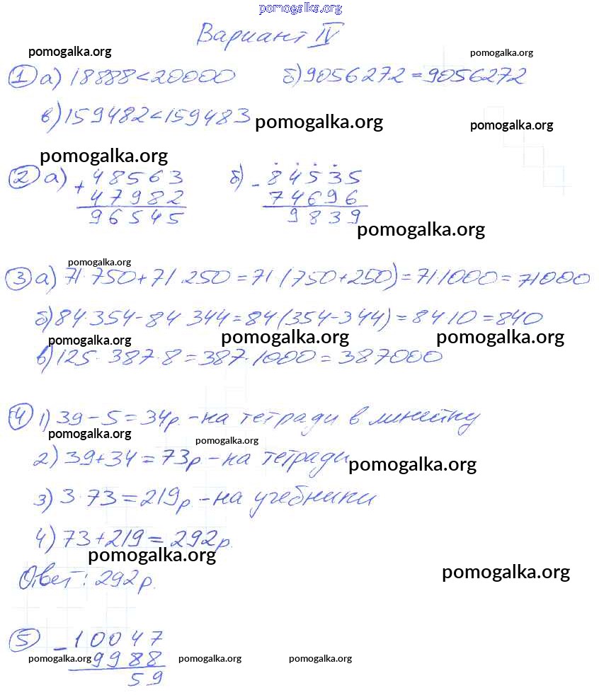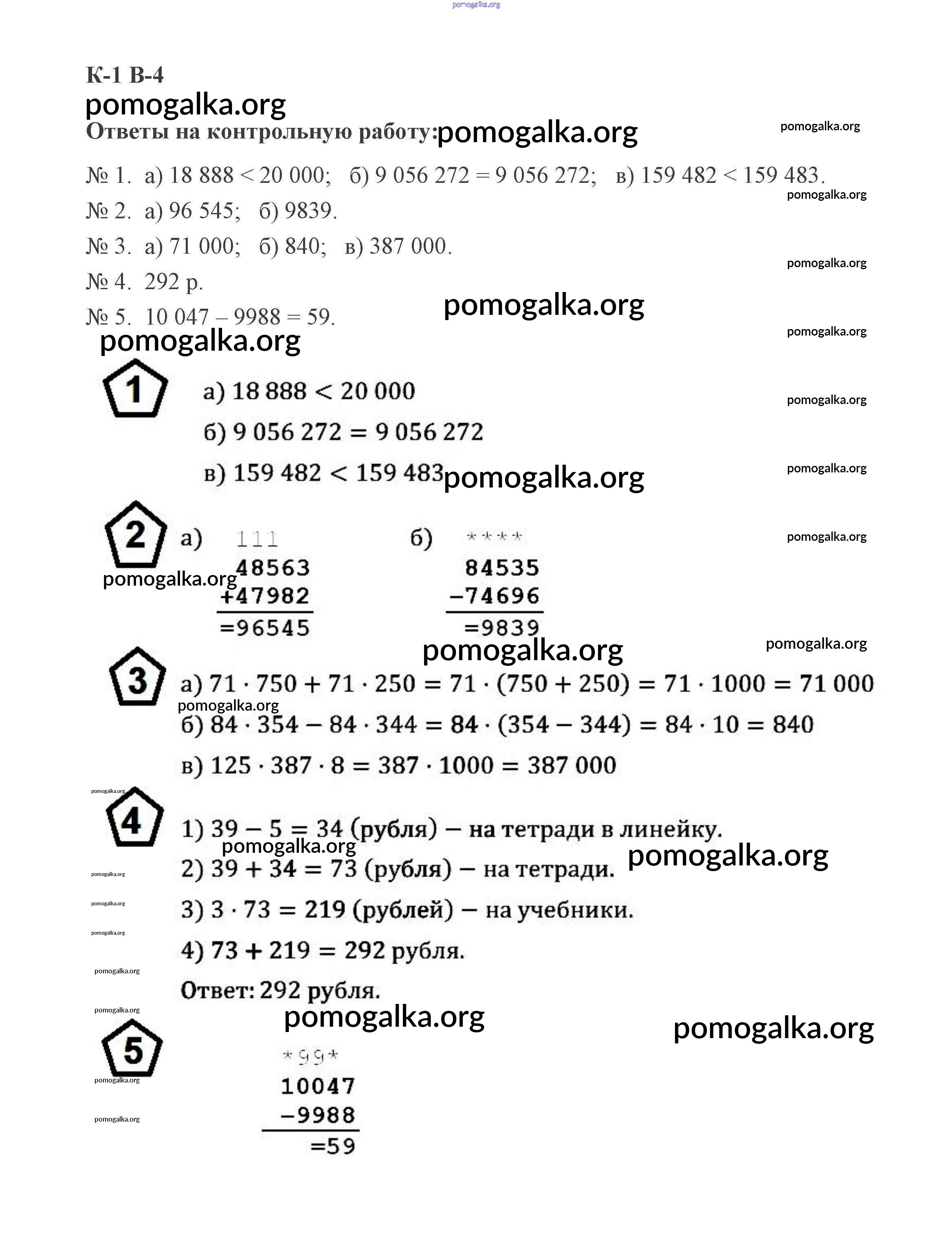Готовые ответы - Математика 5 класс Дидактические материалы Потапов М.К. - кр-1. вариант контрольная работа 4