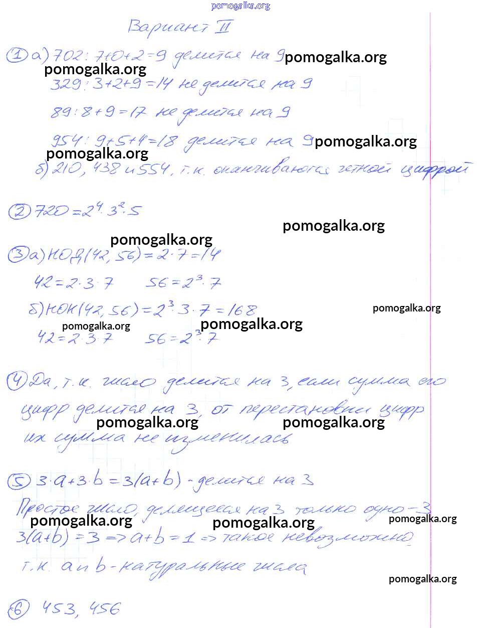 Готовые ответы - Математика 5 класс Дидактические материалы Потапов М.К. - кр-5. вариант контрольная работа 2