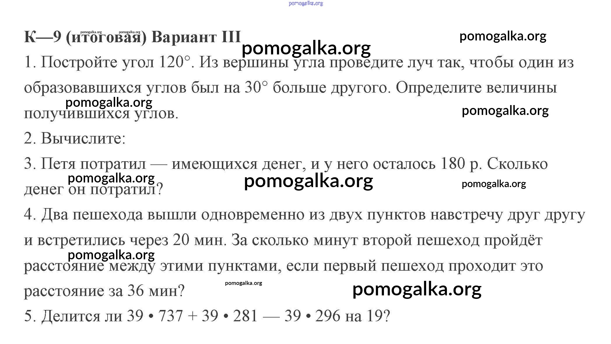 Готовые ответы - Математика 5 класс Дидактические материалы Потапов М.К. - кр-9. вариант контрольная работа 3