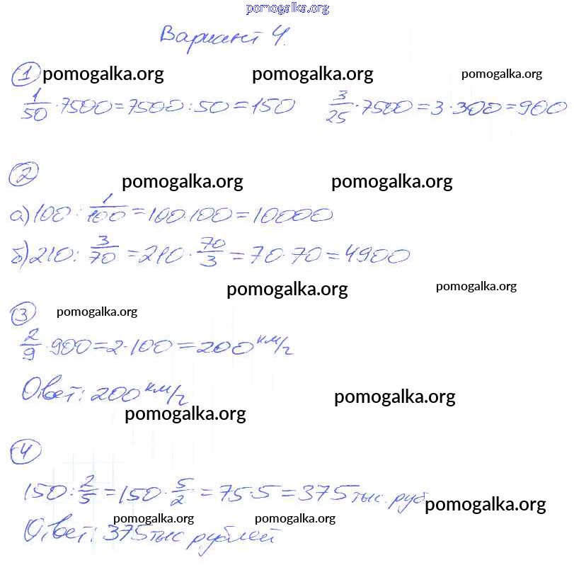 Готовые ответы - Математика 5 класс Дидактические материалы Рудницкая В.Н. ( к уч. Зубаревой И.И.) - ср-19. вариант самостоятельная работа 4