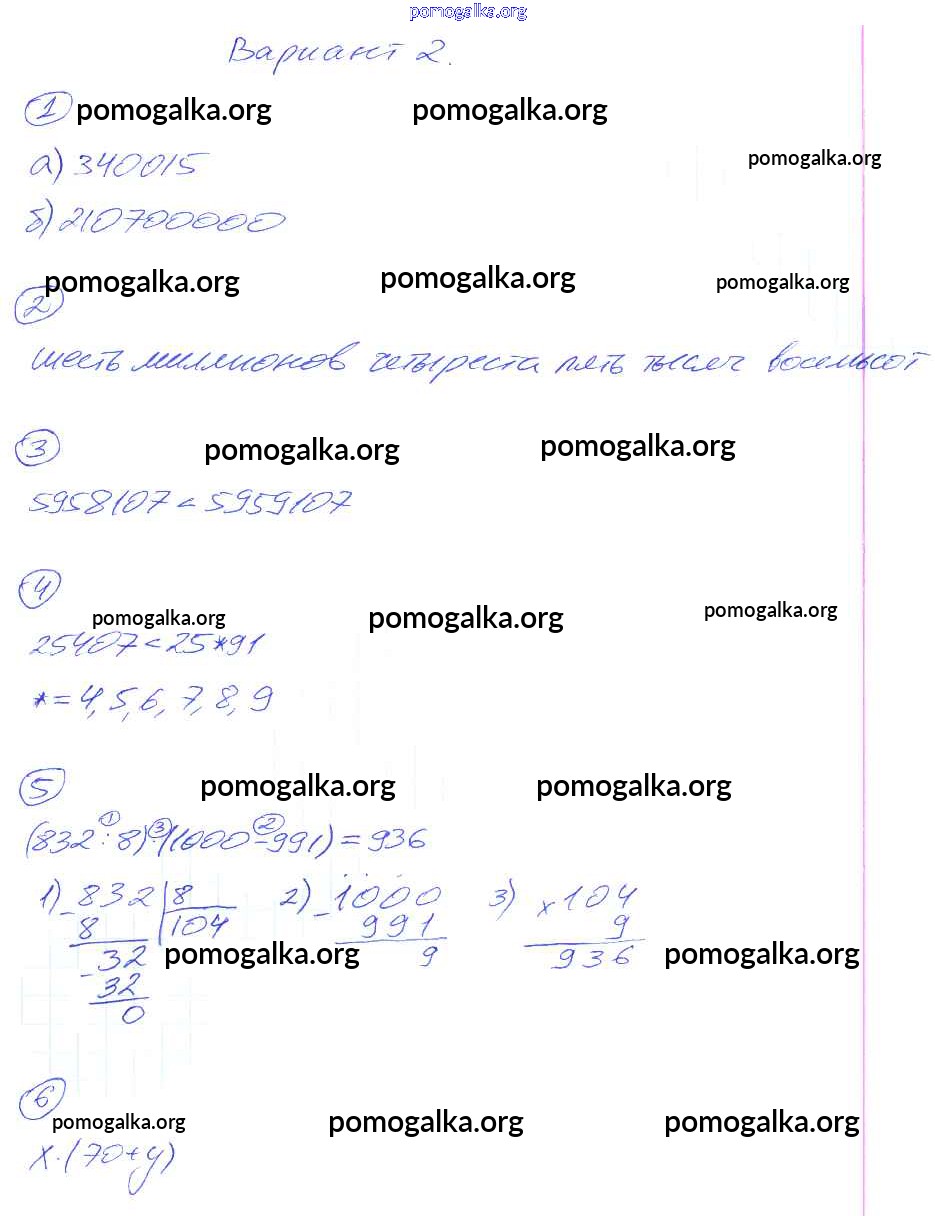 Готовые ответы - Математика 5 класс Дидактические материалы Рудницкая В.Н. ( к уч. Зубаревой И.И.) - кр-1. вариант контрольная работа 2