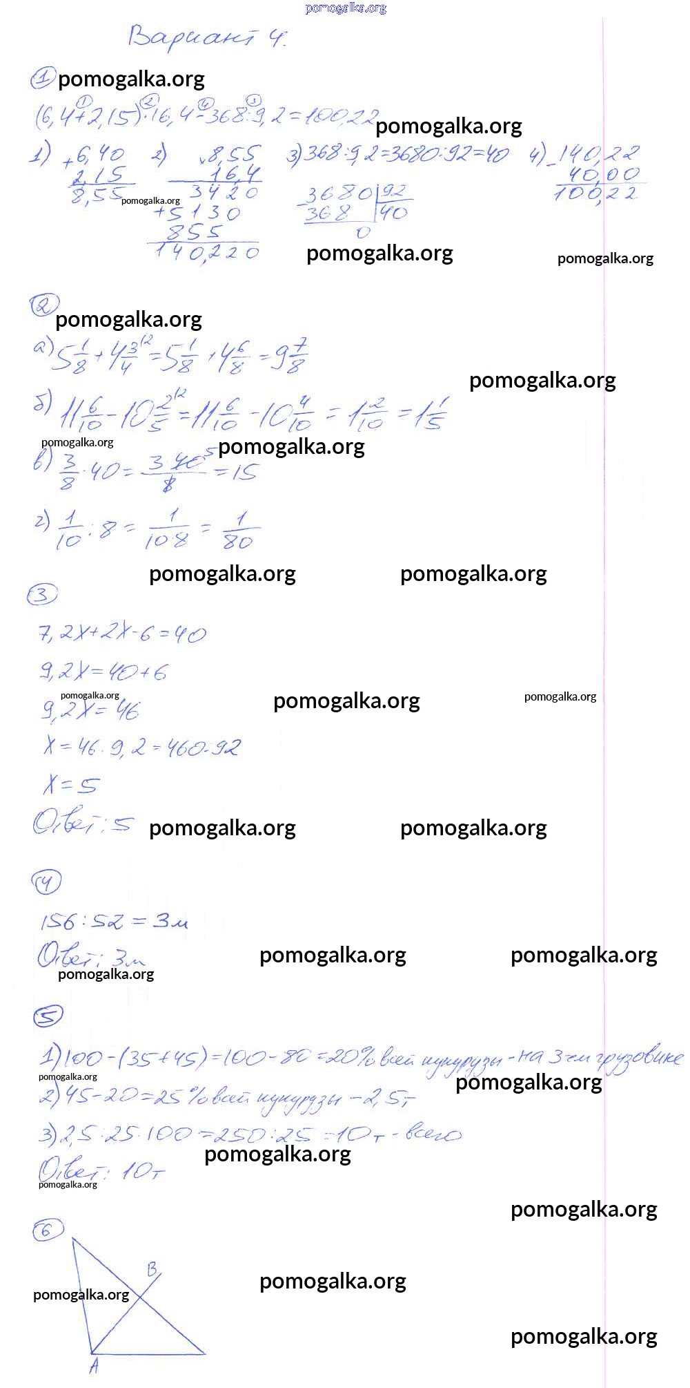 Готовые ответы - Математика 5 класс Дидактические материалы Рудницкая В.Н. ( к уч. Зубаревой И.И.) - кр-16. вариант контрольная работа 4