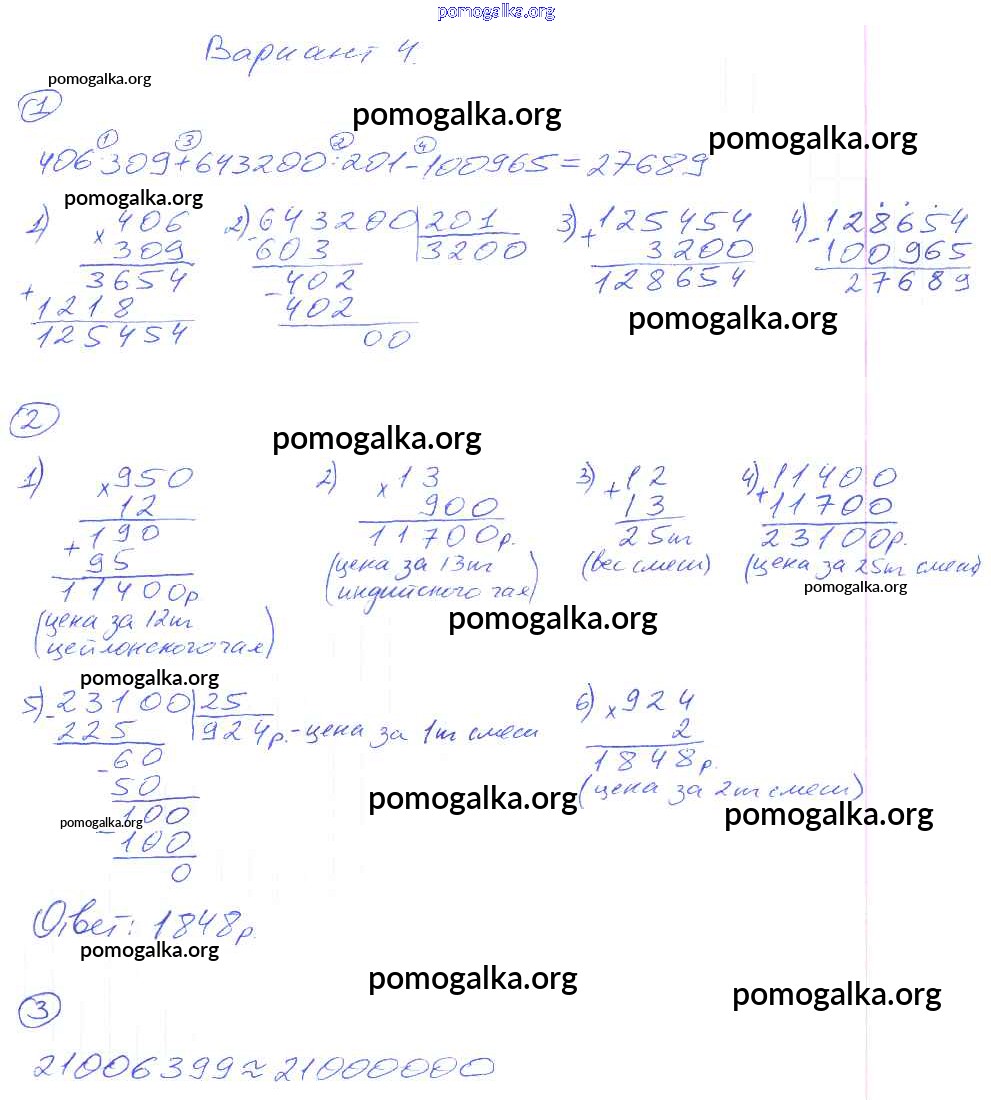 Готовые ответы - Математика 5 класс Дидактические материалы Рудницкая В.Н. ( к уч. Зубаревой И.И.) - кр-3. вариант контрольная работа 4