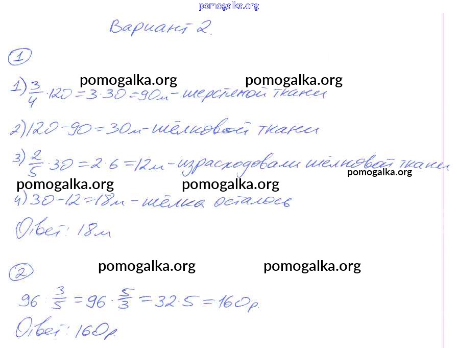 Готовые ответы - Математика 5 класс Дидактические материалы Рудницкая В.Н. ( к уч. Зубаревой И.И.) - кр-6. вариант контрольная работа 2