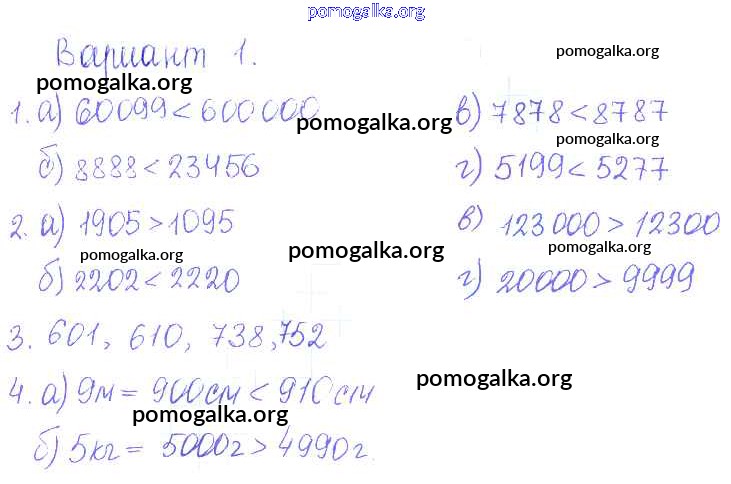 Готовые ответы - Математика 5 класс Дидактические материалы Кузнецова Л.В. - пр №4 проверочная работа вариант-1
